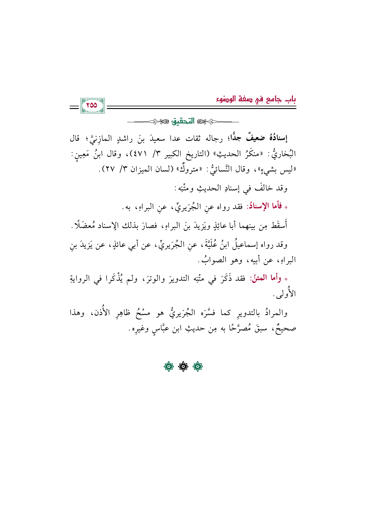 والمرادُ بالتدويرِ كما فسَّرَه الجُرَيريُّ هو مسْحُ ظاهِرِ الأُذن، وهذا صحيحٌ، سبقَ مُصرَّحًا به مِن حديثِ ابن عبَّاسٍ وغيرِه.