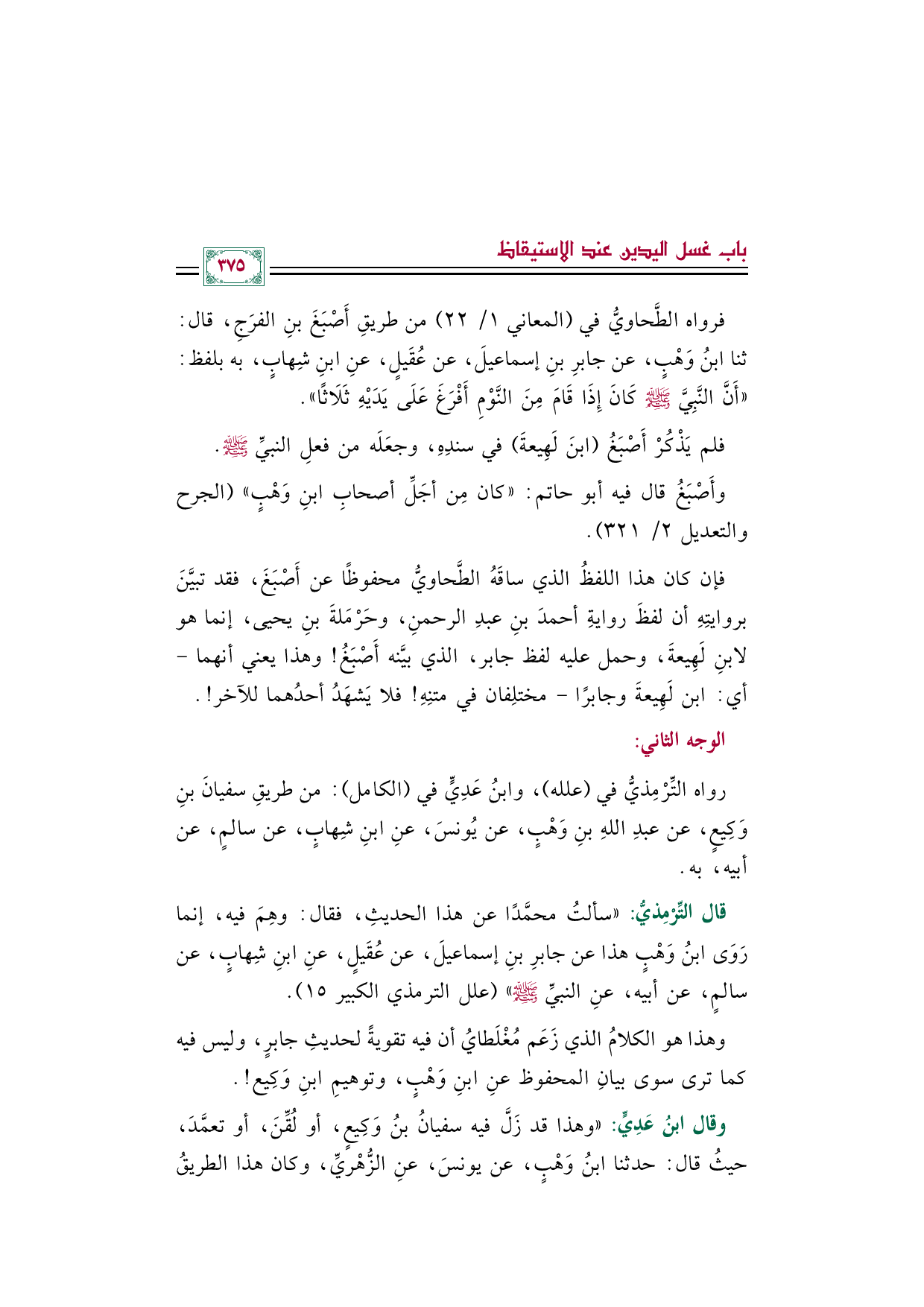 وهذا هو الكلامُ الذي زَعَم مُغْلَطايُ أن فيه تقويةً لحديثِ جابرٍ، وليس فيه كما ترى سوى بيانِ المحفوظ عنِ ابنِ وَهْبٍ، وتوهيمِ ابنِ وَكِيع! .