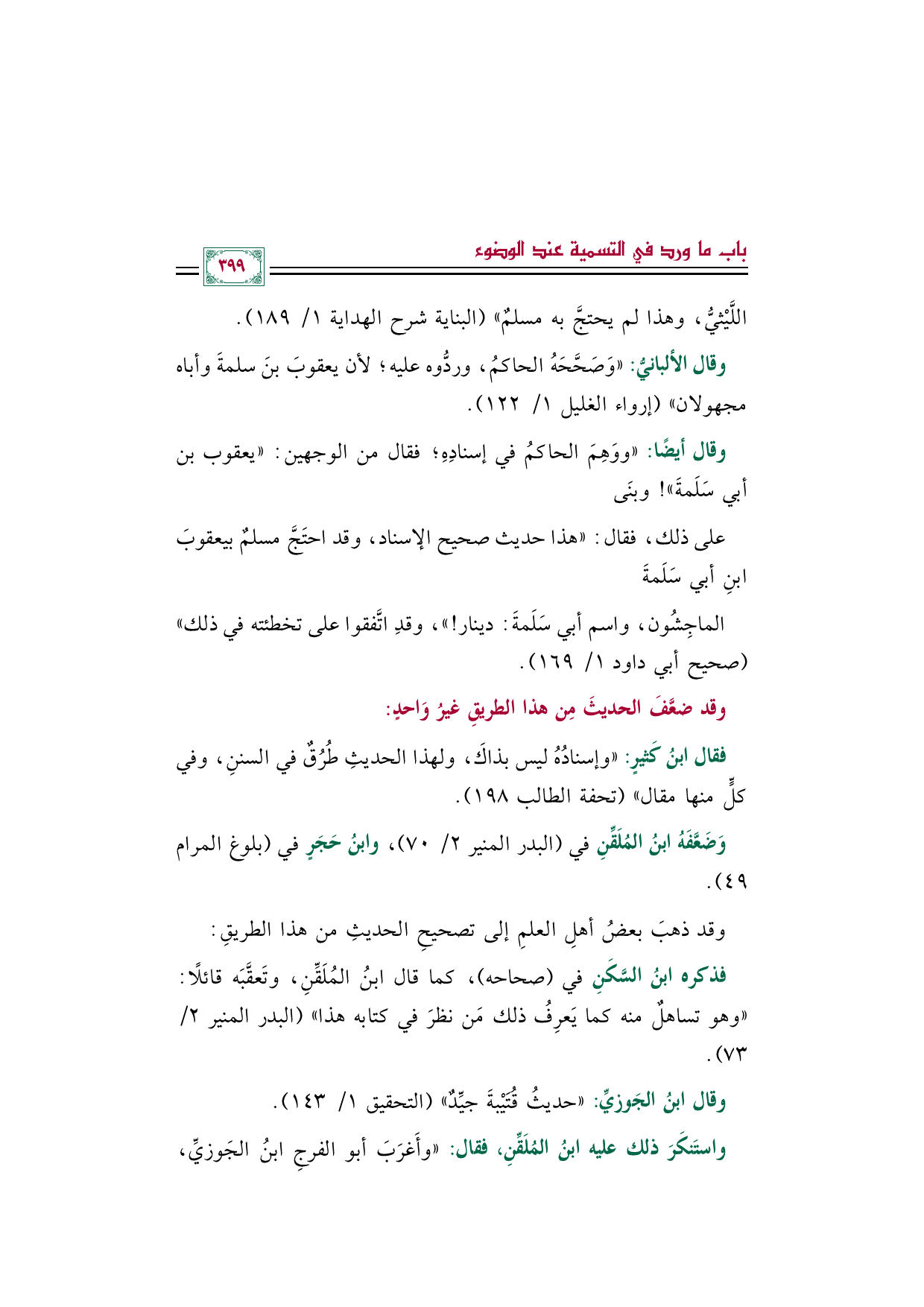 وقال الألبانيُّ: "وَصَحَّحَهُ الحاكمُ، وردُّوه عليه؛ لأن يعقوبَ بنَ سلمةَ وأباه مجهولان" (إرواء الغليل ١/ ١٢٢).