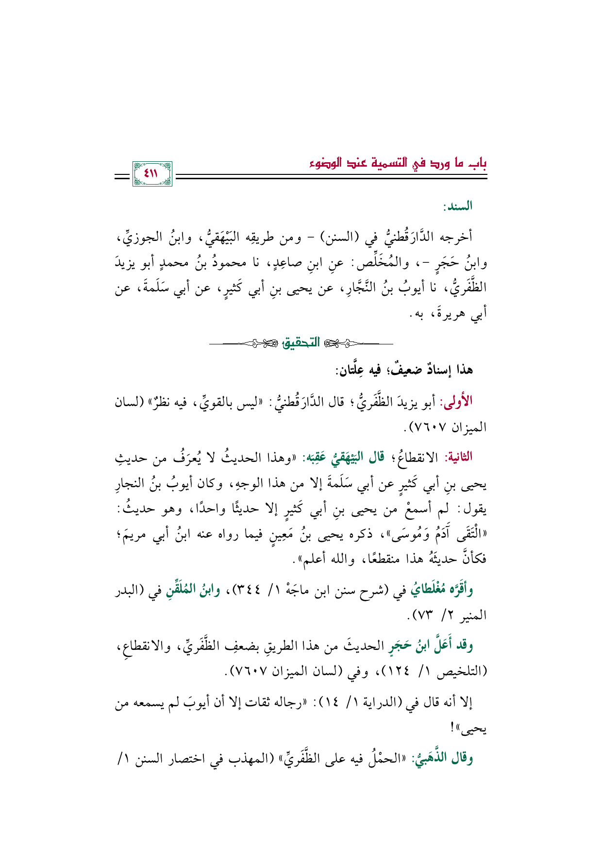 الأولى: أبو يزيدَ الظَّفَريُّ؛ قال الدَّارَقُطنيُّ: "ليس بالقويِّ، فيه نظرٌ" (لسان الميزان ٧٦٠٧).