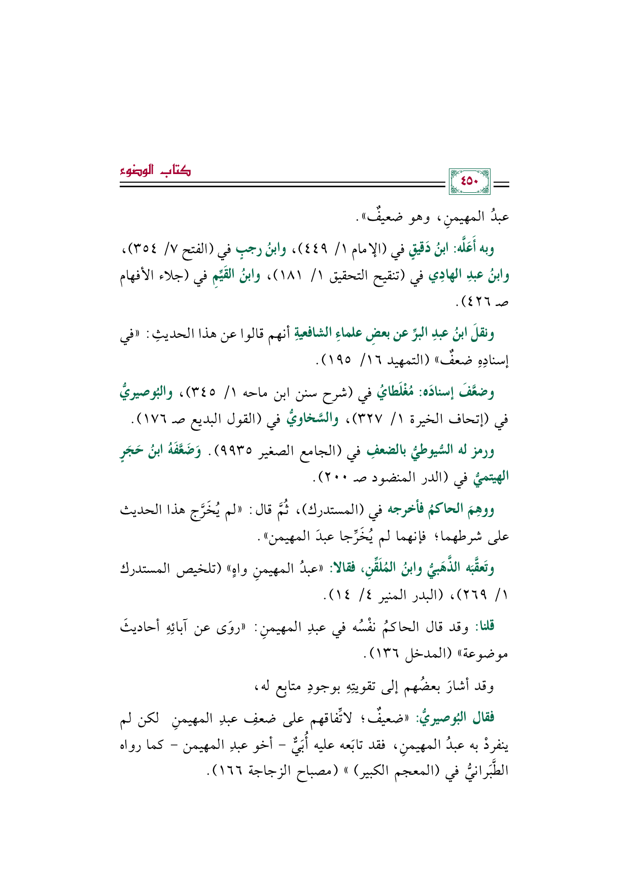 وتَعقَّبَه الذَّهَبيُّ وابنُ المُلَقِّنِ، فقالا: "عبدُ المهيمنِ واهٍ" (تلخيص المستدرك ١/ ٢٦٩)، (البدر المنير ٤/ ١٤).