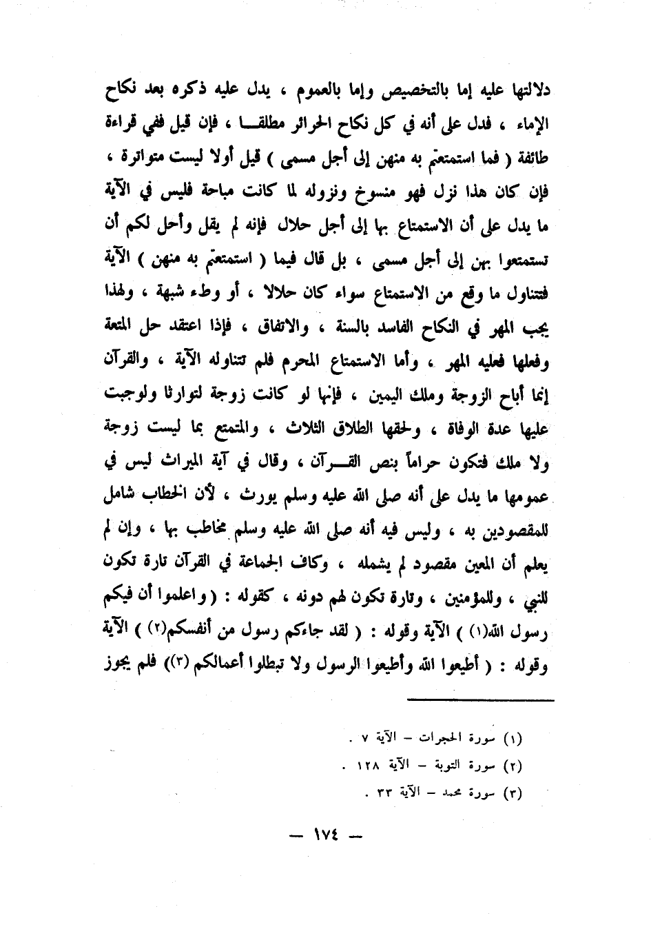 دلالتها عليه إما بالتخصيص وإما بالعموم، يدل عليه ذكره بعد نكاح الإماء، فدل على أنه في كل نكاح الحرائر مطلقا. فإن قيل: ففي قراءة طائفة "فما استمتعتم به منهن إلى أجل مسمى"، قيل: أولا: ليست متواترة، فإن كان هذا نزل فهو منسوخ، ونزوله لما كانت مباحة؛ فليس في الآية ما يدل على أن الاستمتاع بها إلى أجل حلال، فإنه لم يقل: وأحل لكم أن تستمتعوا بهن إلى أجل مسمى، بل قال: {فَمَا اسْتَمْتَعْتُمْ بِهِ مِنْهُنَّ} الآية، فتتناول ما وقع من الاستمتاع سواء كان حلالا أو وطء شبهة، ولهذا يجب المهر في النكاح الفاسد بالسنة والاتفاق. فإذا اعتقد حل المتعة وفعلها فعليه المهر، وأما الاستمتاع المحرم فلم تتناوله الآية. والقرآن إنما أباح الزوجة وملك اليمين، فإنها لو كانت زوجة لتوارثا، ولوجبت عليها عدة الوفاة، ولحقها الطلاق الثلاث؛ والمتمتع بها ليست زوجة ولا ملك فتكون حراما بنص القرآن.