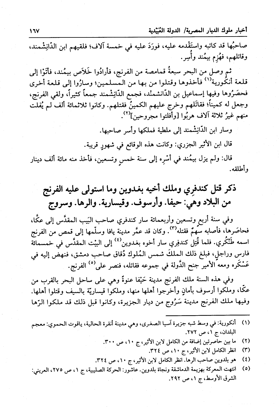 ذكر قتل كندفري وملك أخيه بغدوين وما استوى عليه الفرنج من البلاد وهي : حيفا . وأرسوف . وقيسارية . والرها . وسروج