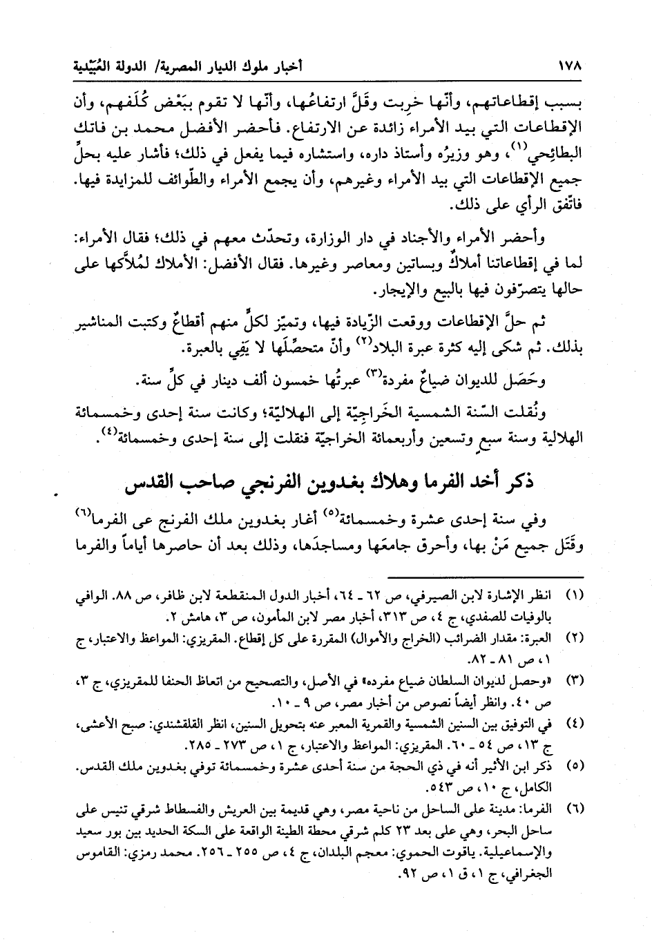 ذكر أخذ الفرما وهلاك بغدوين الفرنجي صاحب القدس