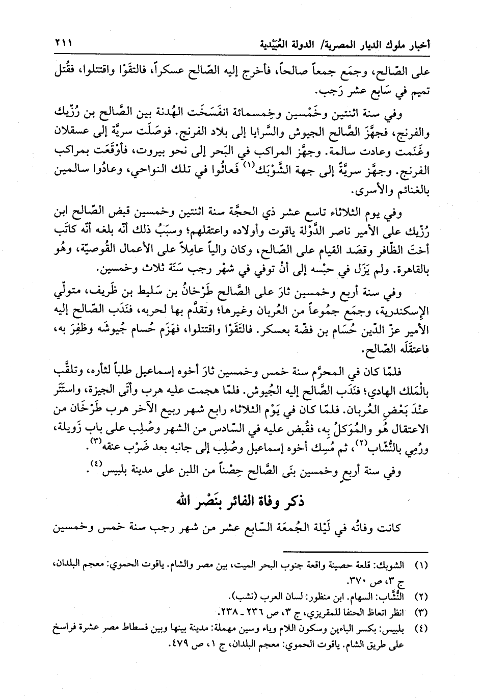 وفي سنة أربع وخمسين بنى الصالح حصناً من اللبن على مدينة بلبيس .