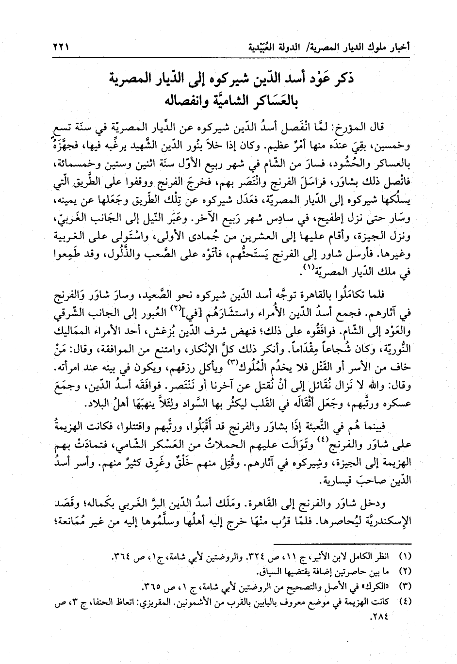 ذكر عود أسد الدين شيركوه إلى الديار المصرية بالعساكر الشامية وانفصاله