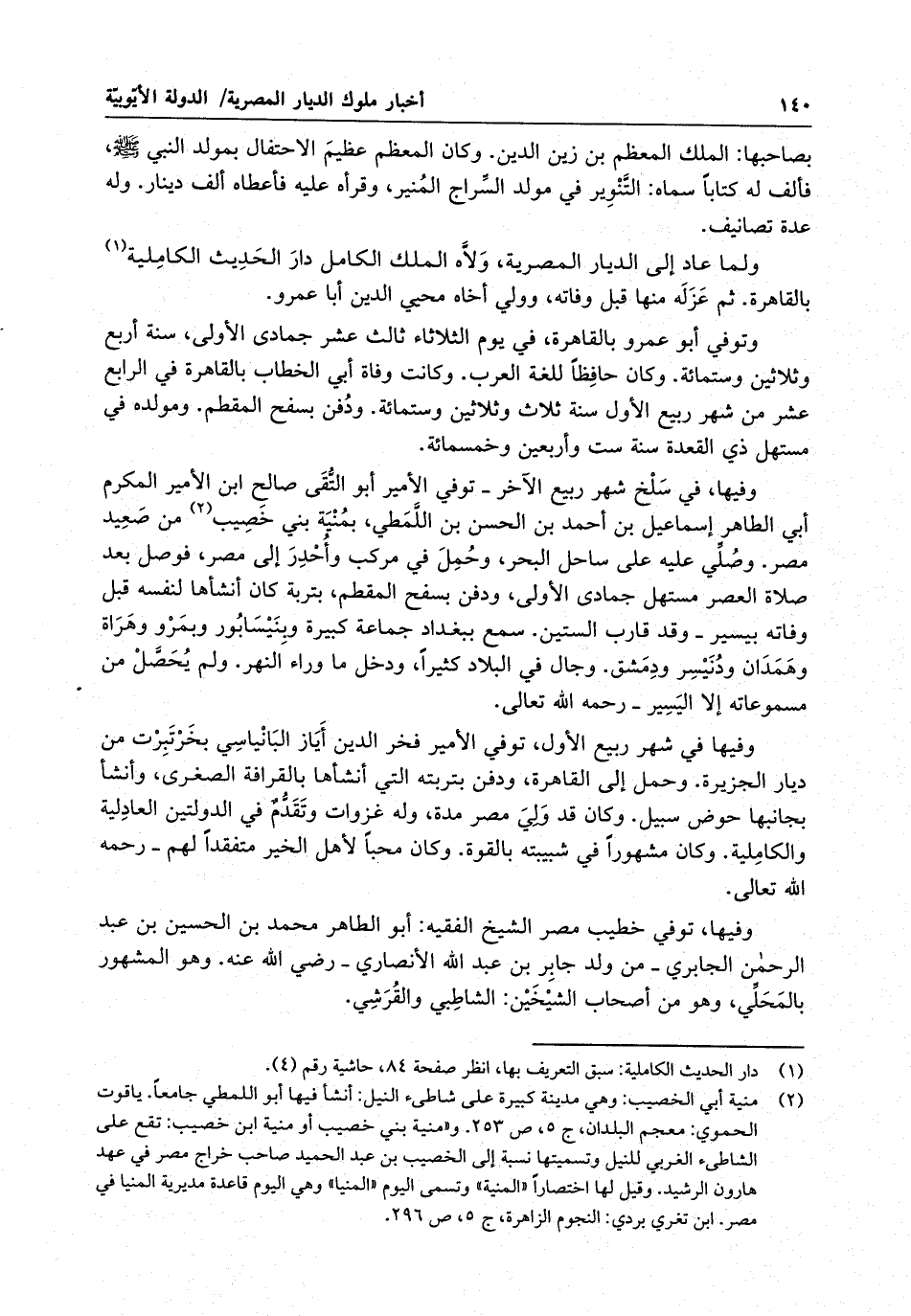 وفيها ، في سلخ شهر ربيع الآخر - توفي الأمير أبو التقي صالح بن الأمير المكرم أبي الطاهر إسماعيل بن أحمد بن الحسن بن اللمطي ، بمنية بني خصيب من صعيد مصر . وصلى عليه على ساحل البحر ، وحمل في مركب وأحدر إلى مصر ، فوصل بعد صلاة العصر مستهل جمادى الأولى ، ودفن بسفح المقطم ، بتربة كان أنشأها لنفسه قبل وفاته بيسير - وقد قارب الستين . سمع ببغداد جماعة كبيرة وبنيسابور وبمرو وهراه وهمدان ودنيسر ودمشق . وجال في البلاد كثيرا ، ودخل ما وراء النهر . ولم يحصل من مسموعاته إلا اليسير - رحمه الله تعالى .