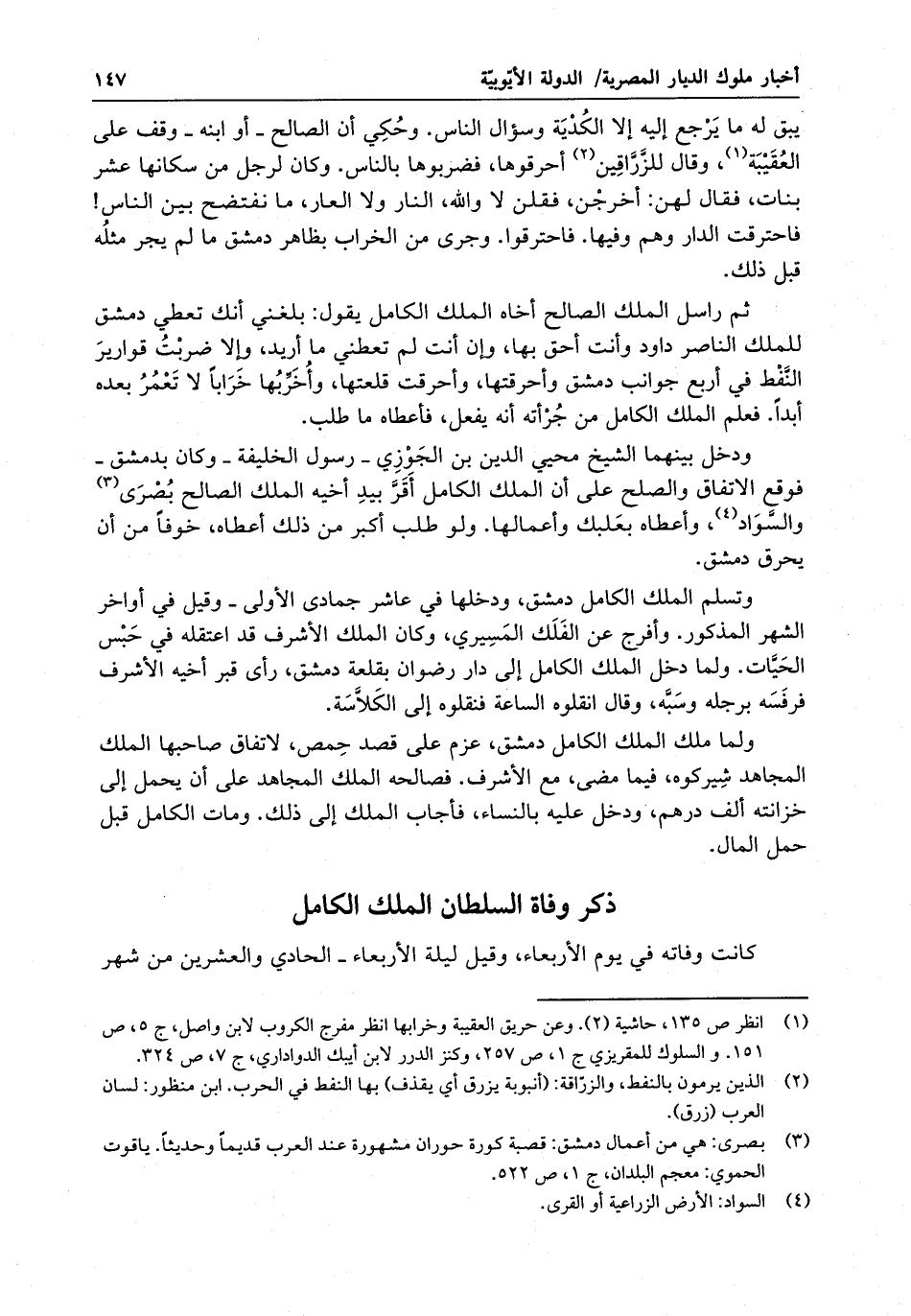 ذكر وفاة السلطان الملك الكامل