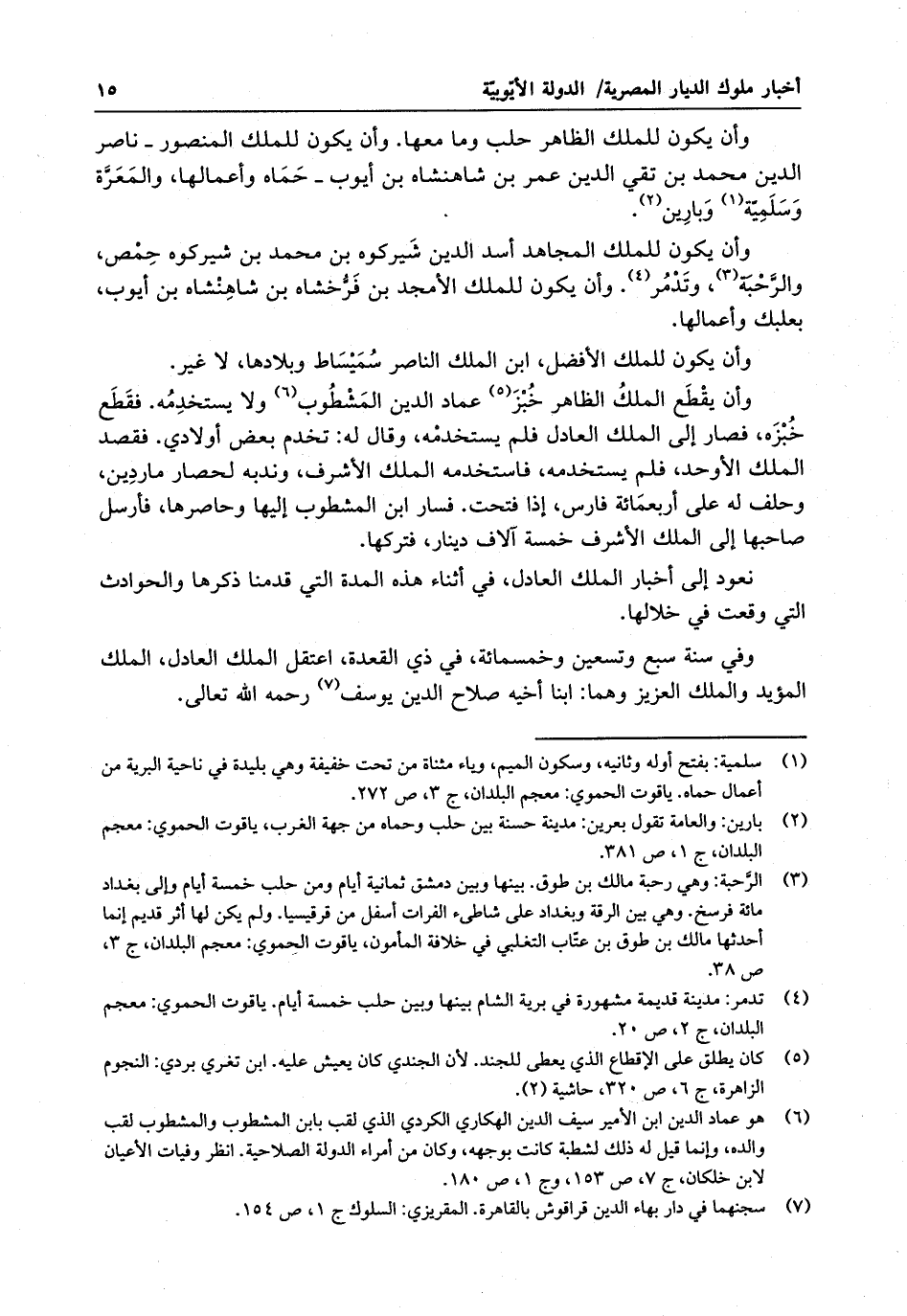 وأن يكون للملك المجاهد أسد الدين شيركوه بن محمد بن شيركوه حمص ، والرحبة ، تدمر . وأن يكون للملك الأمجد ، بن فرخشاه ابن شاهنشاه بن أيوب ، بعلبك وأعمالها .
