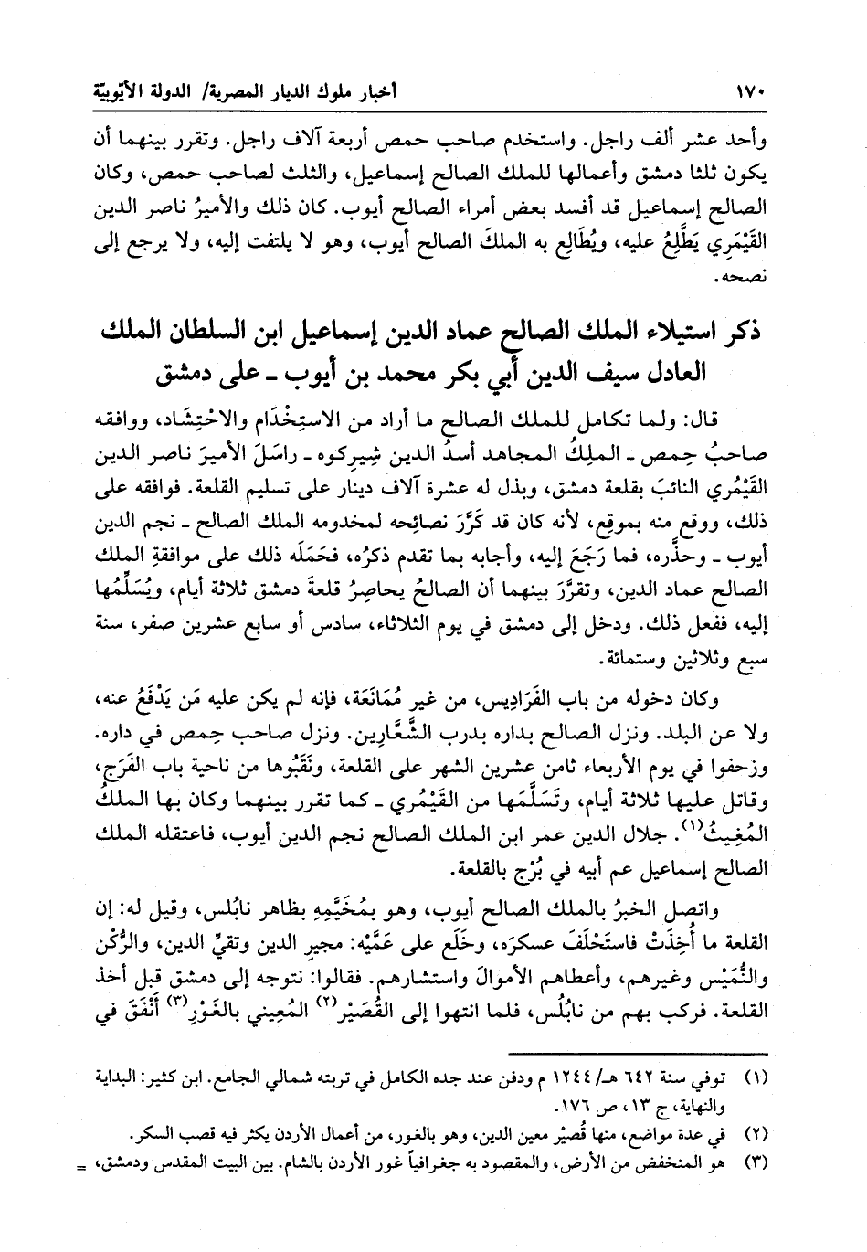 ذكر استيلاء الملك الصالح عماد الدين إسماعيل ابن السلطان الملك العادل سيف الدين أبي بكر محمد بن أيوب - على دمشق