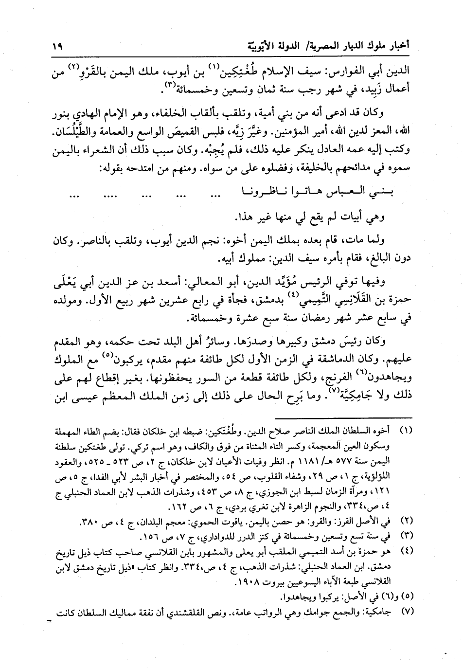 الدين أبي الفوارس : سيف الإسلام طغتكين بن أيوب ، ملك اليمن بالقرو من أعمال زبيد ، في شهر رجب سنة ثمان وتسعين وخمسمائة .