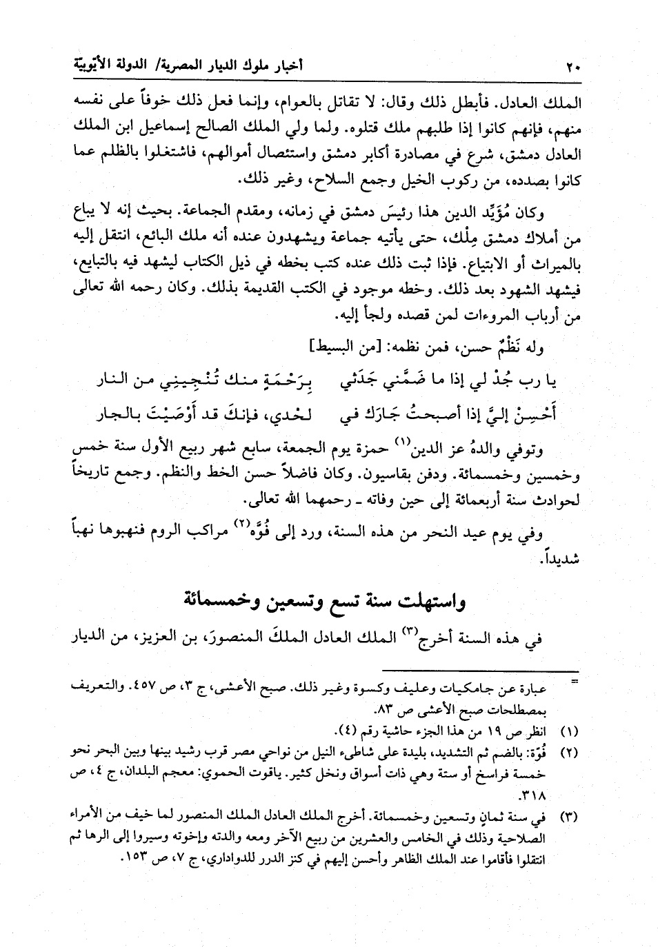 الملك العادل ، فأبطل ذلك وقال : لا نقاتل بالعوام . وإنما فعل ذلك خوفاً على نفسه منهم ، فإنهم كانوا إذا طلبهم ملك قتلوه . ولما ولى الملك الصالح إسماعيل بن الملك العادل دمشق ، شرع في مصادرة أكابر دمشق واستئصال أموالهم . فاشتغلوا بالظلم عما كانوا بصدده ، من ركوب الخيل وجمع السلاح ، وغير ذلك .