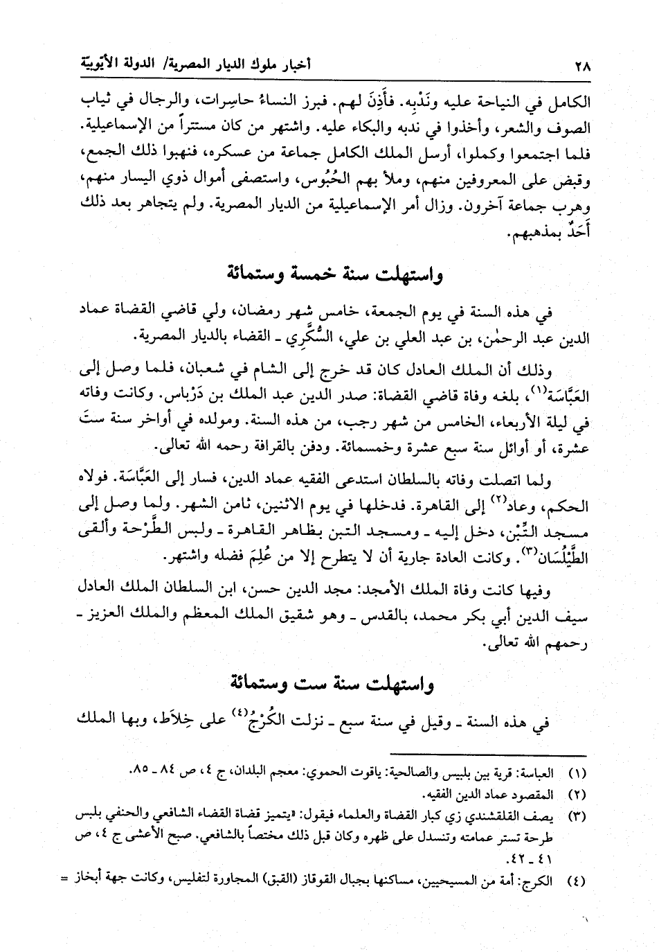 الكامل في النياحة عليه وندبه ، فأذن لهم . فبرز النساء حاسرات ، والرجال في ثياب الصوف والشعر ، وأخذوا في ندبه والبكاء عليه . واشتهر من كان مستتراً من الإسماعيلية . فلما اجتمعوا وكملوا ، أرسل الملك الكامل جماعة من عسكره ، فنهبوا ذلك الجمع ، وقبض على المعروفين منهم ، وملأ بهم الحبوس ، واستصفى أموال ذوي اليسار منهم ، وهرب جماعة آخرون . وزال أمر الإسماعيلية من الديار المصرية . ولم يتجاهر بعد ذلك أحدٌ بمذهبهم .