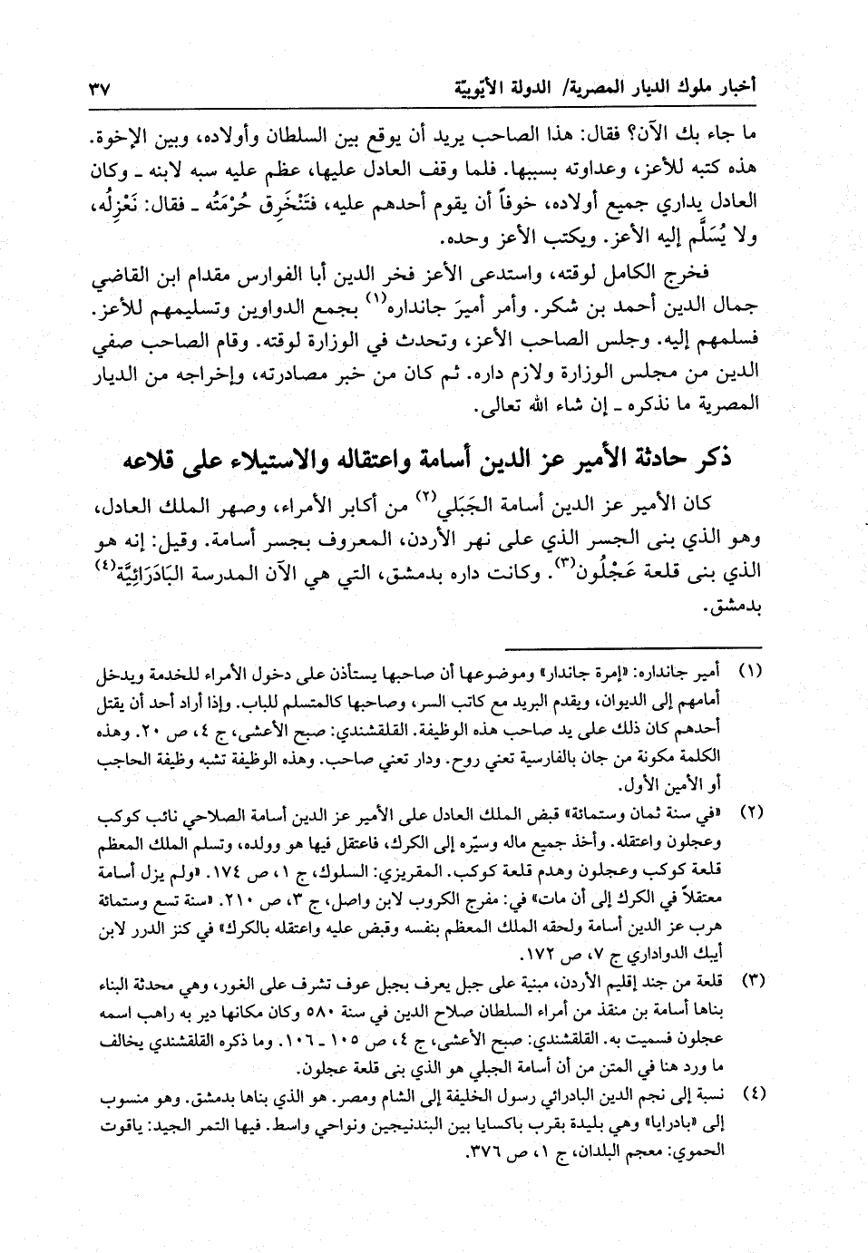 ذكر حادثة الأمير عز الدين أسامة واعتقاله والاستيلاء على قلاعه