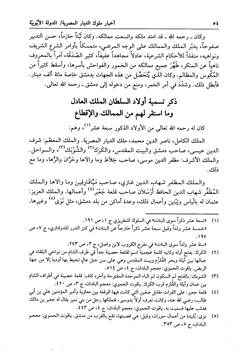 ذكر تسمية أولاد السلطان الملك العادل وما استقر لهم من الممالك والإقطاع