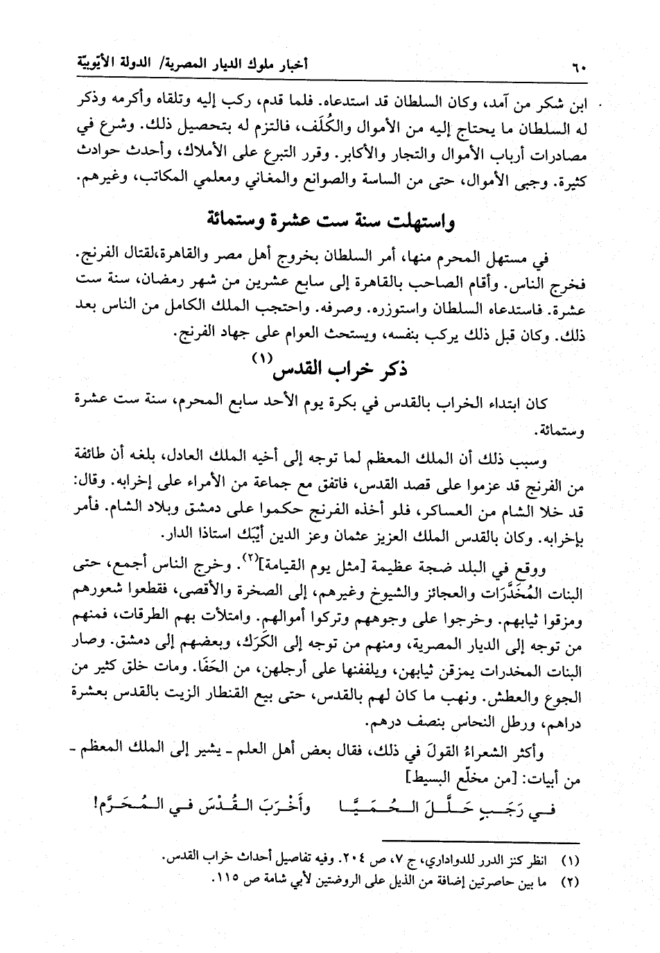 وأكثر الشعراء القول في ذلك ، فقال بعض أهل العلم - يشير إلى الملك المعظم - من أبيات :