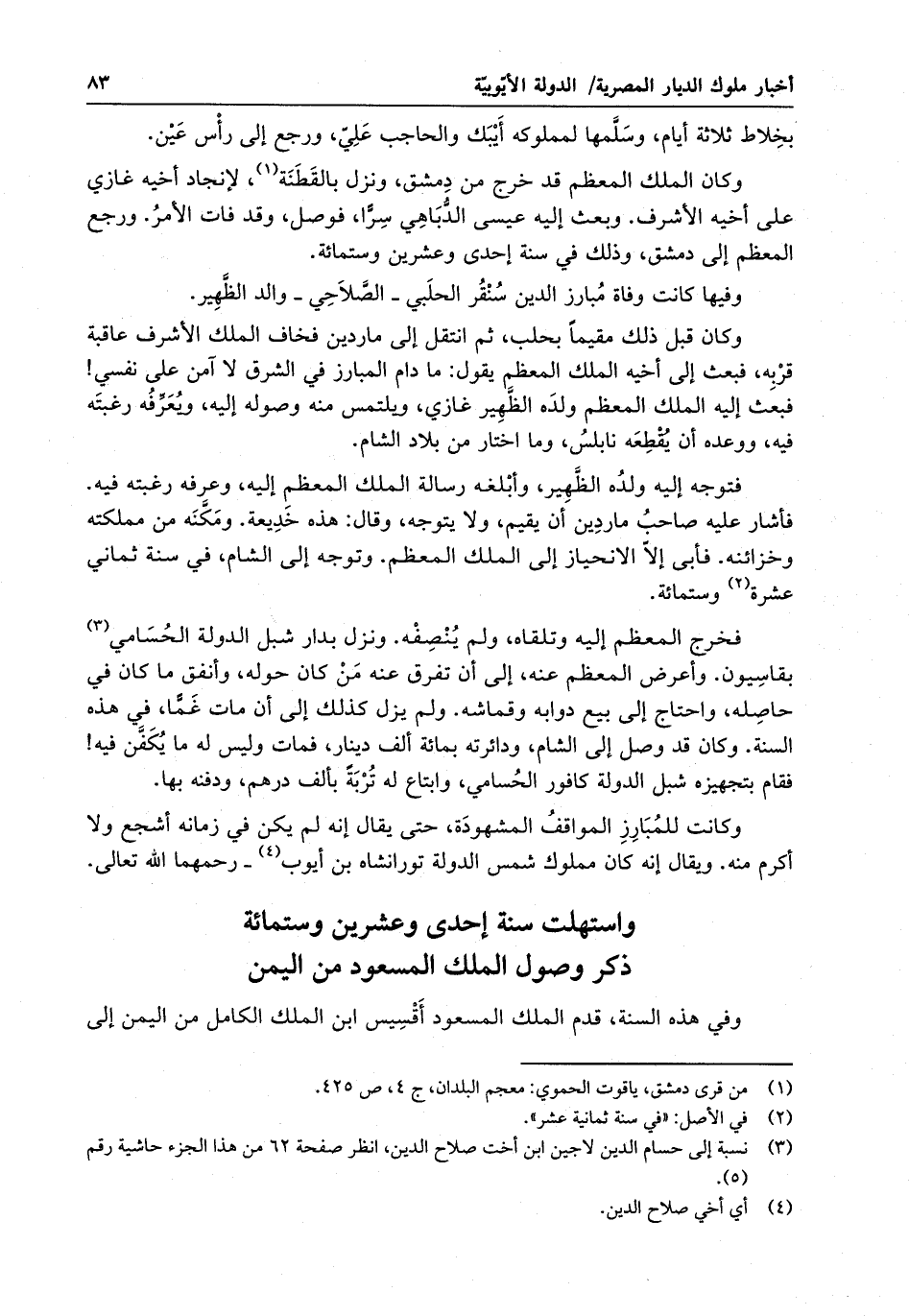 واستهلت سنة إحدى وعشرين وستمائة ذكر وصول الملك المسعود من اليمن
