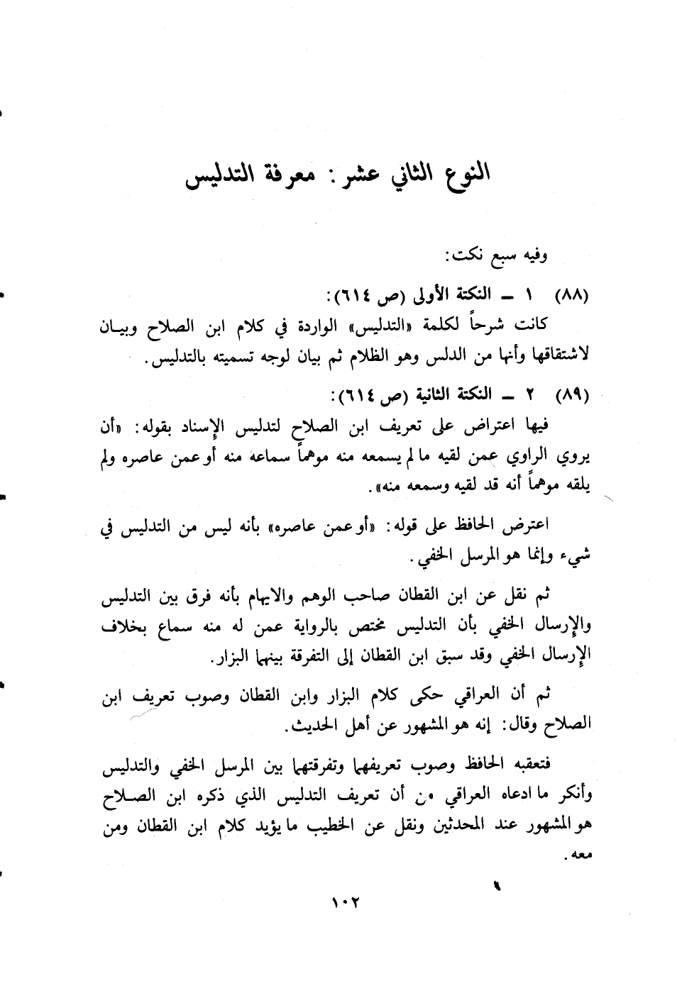 فيها اعتراض على تعريف ابن الصلاح لتدليس الإسناد بقوله: "أن يروي الراوي عمن لقيه ما لم يسمعه منه موهما سماعه منه أو عمن عاصره ولم يلقه موهما أنه قد لقيه وسمع منه".