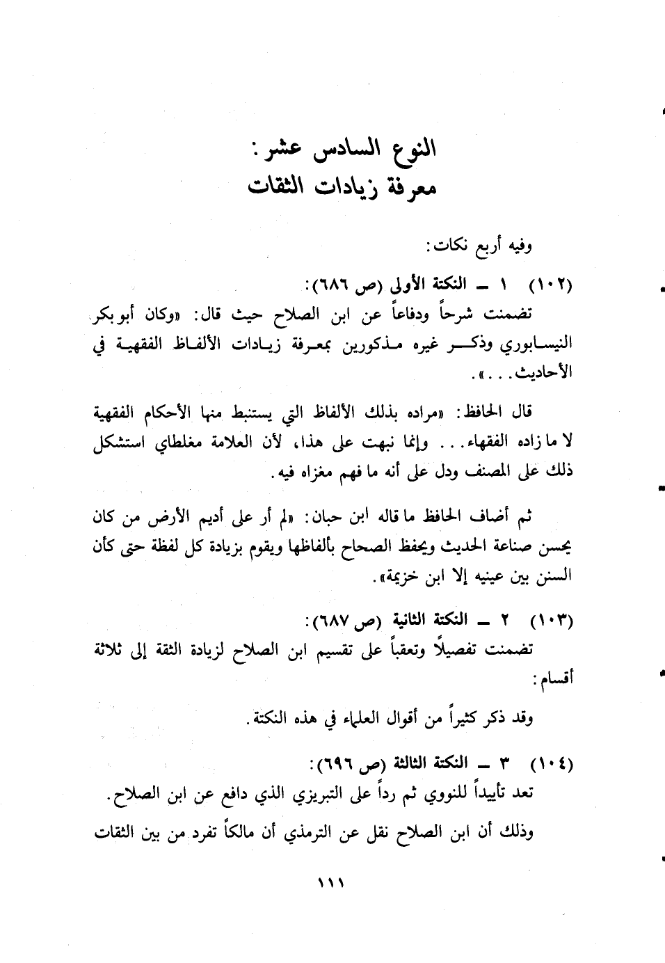 تضمنت تفصيلا وتعقبا على تقسيم ابن الصلاح لزيادة الثقة إلى ثلاثة أقسام: