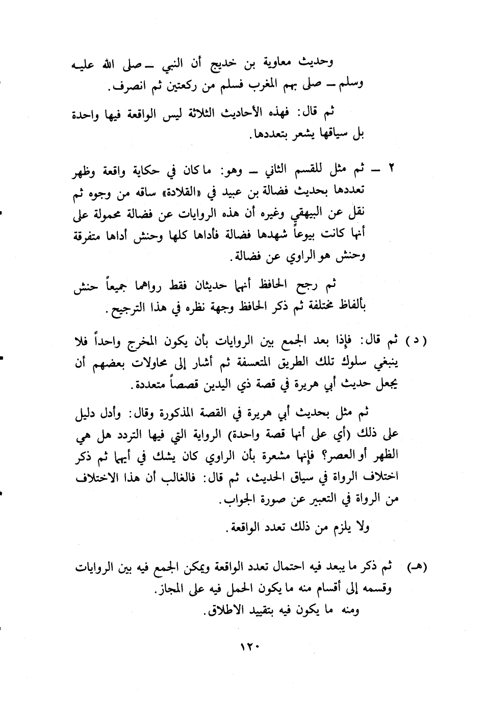 د- ثم قال: فإذا بعد الجمع بين الروايات بأن يكون المخرج واحد فلا ينبغي سلوك تلك الطريق المتعسفة، ثم أشار إلى محاولات بعضهم أن يجعل حديث أبي هريرة في قصة ذي اليدين قصصا متعددة.