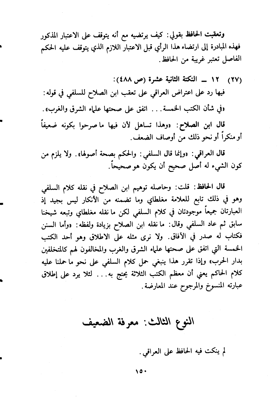 فيها رد على اعتراض العراقي على تعقب ابن الصلاح للسلفي في قوله: "في شأن الكتب الخمسة ... اتفق على صحتها علماء الشرق والغرب".