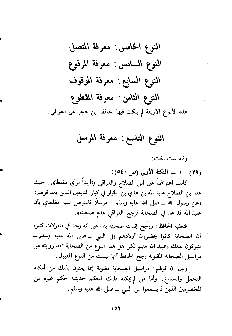 هذه الأنواع الأربعة لم ينكت فيها الحافظ ابن حجر على العرقي..