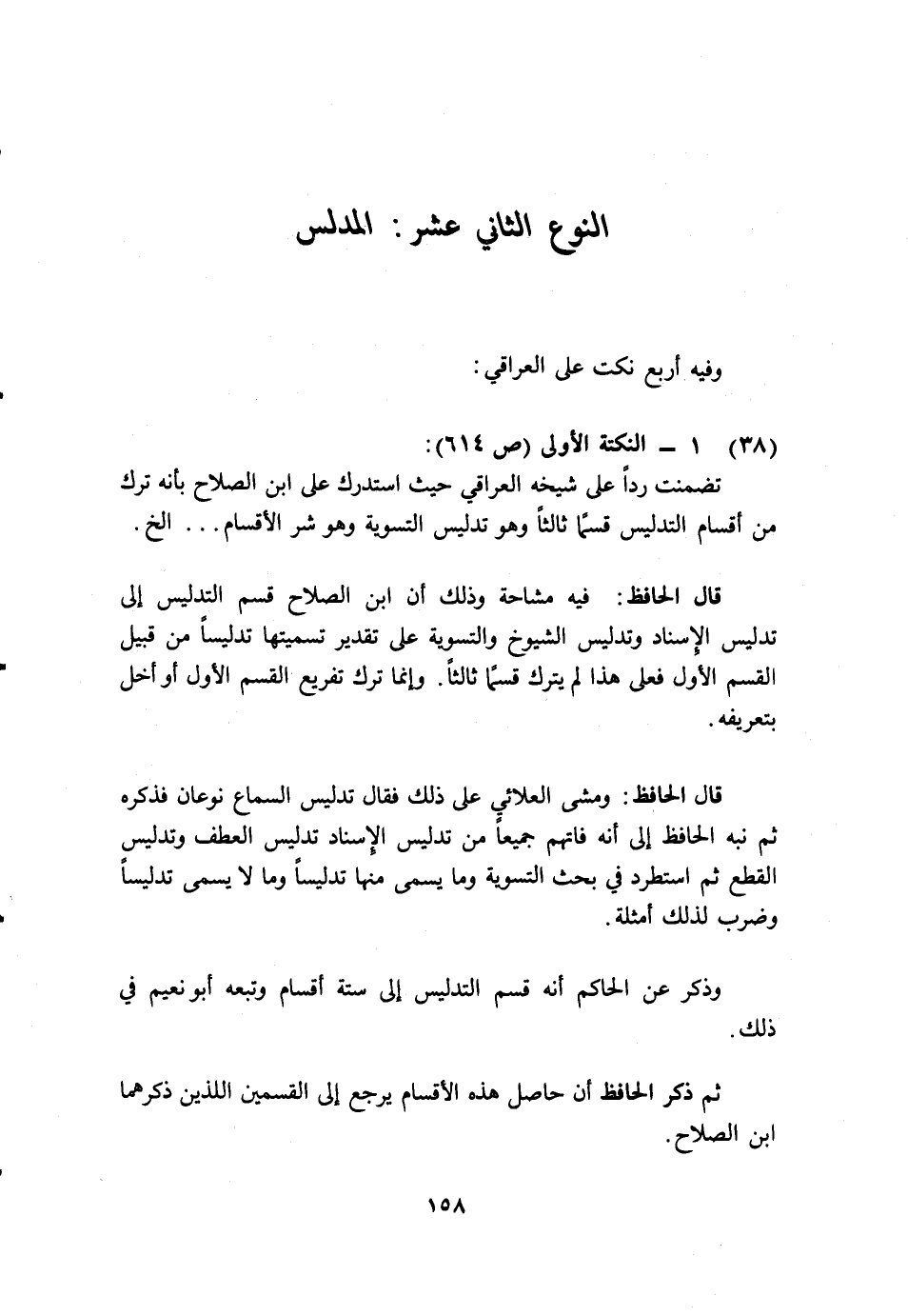 تضمنت ردا على شيخه العراقي حيث استدرك على ابن الصلاح بأنه ترك من أقسام التدليس قسما ثالثا وهو تدليس التسوية وهو شر الأقسام ... الخ.