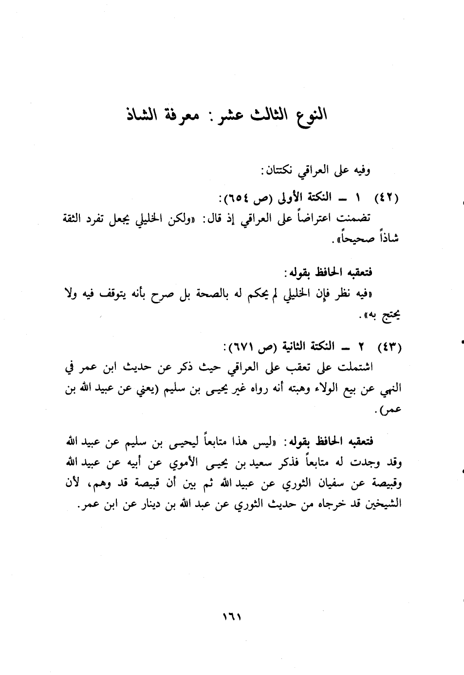 تضمنت اعتراضا على العراقي إذ قال: "ولكن الخليلي يجعل تفرد الثقة شاذا صحيحا".