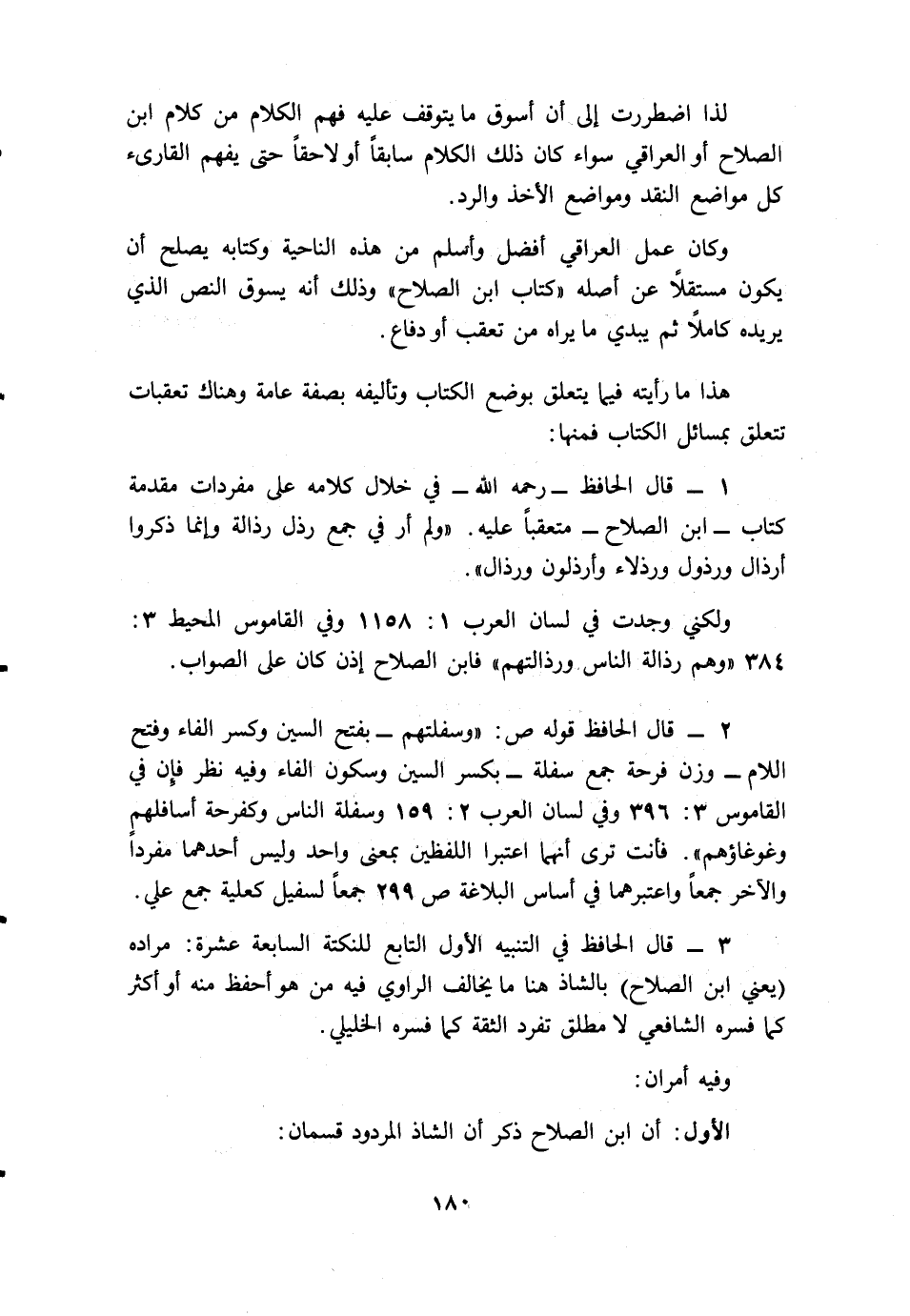 لذا اضطررت إلى أن أسوق ما يتوقف عليه فهم الكلام من كلام ابن الصلاح والعراقي، سواء كان ذلك الكلام سابقا أو لاحقا حتى يفهم القارئ كل مواضع النقد، ومواضع الأخذ والرد.