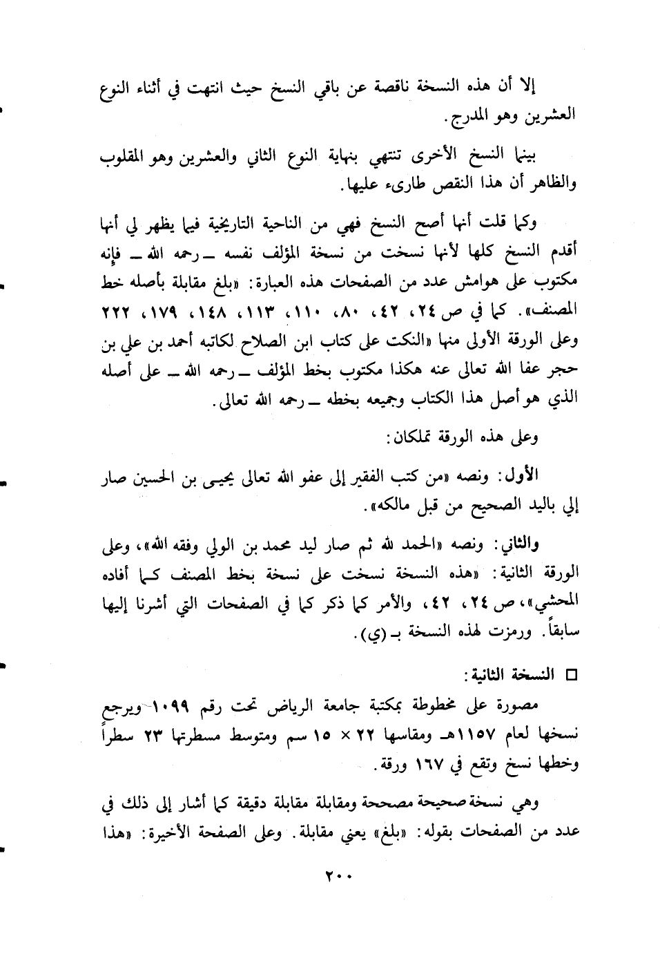 وهي نسخة صحيحة مصححة ومقابلة مقابلة دقيقة كما أشار إلى ذلك في عدد من الصفحات بقوله: (بلغ) يعني مقابلة. وعلى الصفحة الأخيرة: (هذا