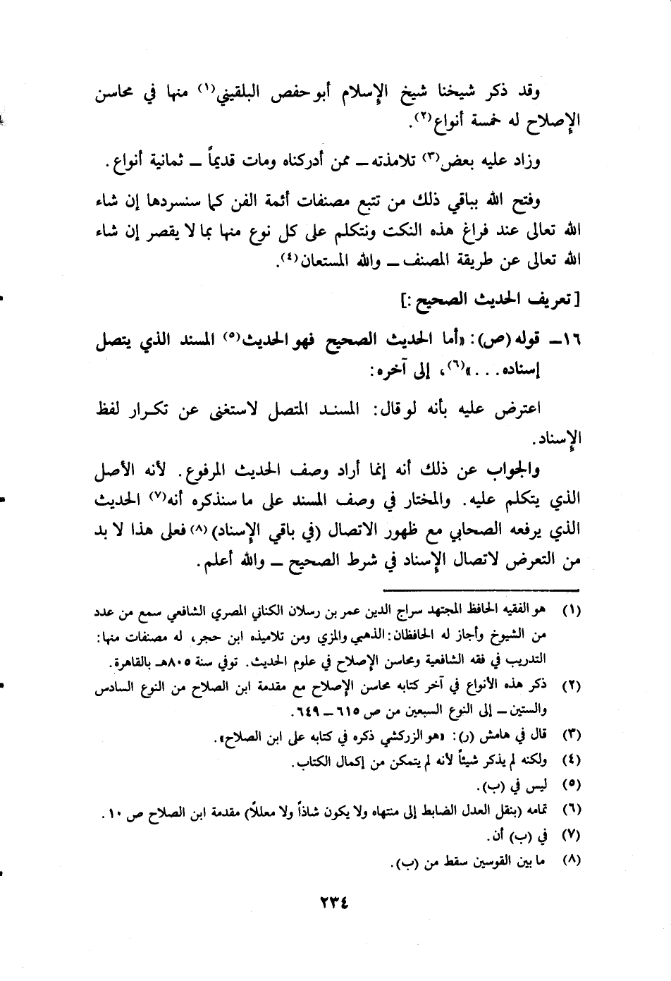 16- قوله (ص) : (أما الحديث الصحيح فهو الحديث1 المسند الذي يتصل إسناده ... ) 2، إلى آخره: