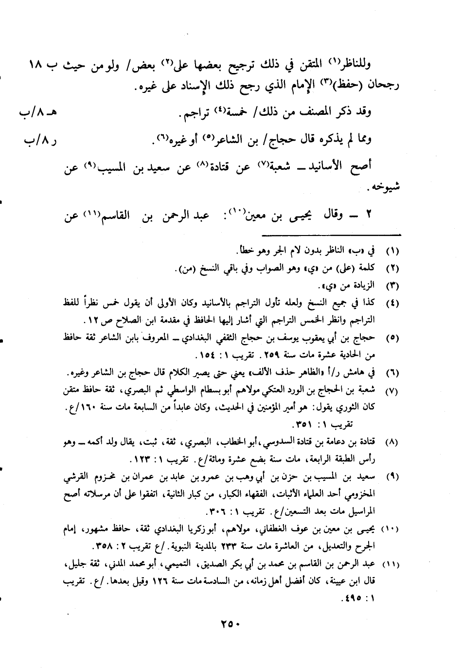 10 يحيى بن معين بن عوف الغطفاني، مولاهم، أبو زكريا البغدادي ثقة، حافظ مشهور، إمام الجرح والتعديل، من العاشرة مات سنة 233 بالمدينة النبوية. /ع. تقريب 2: 358.