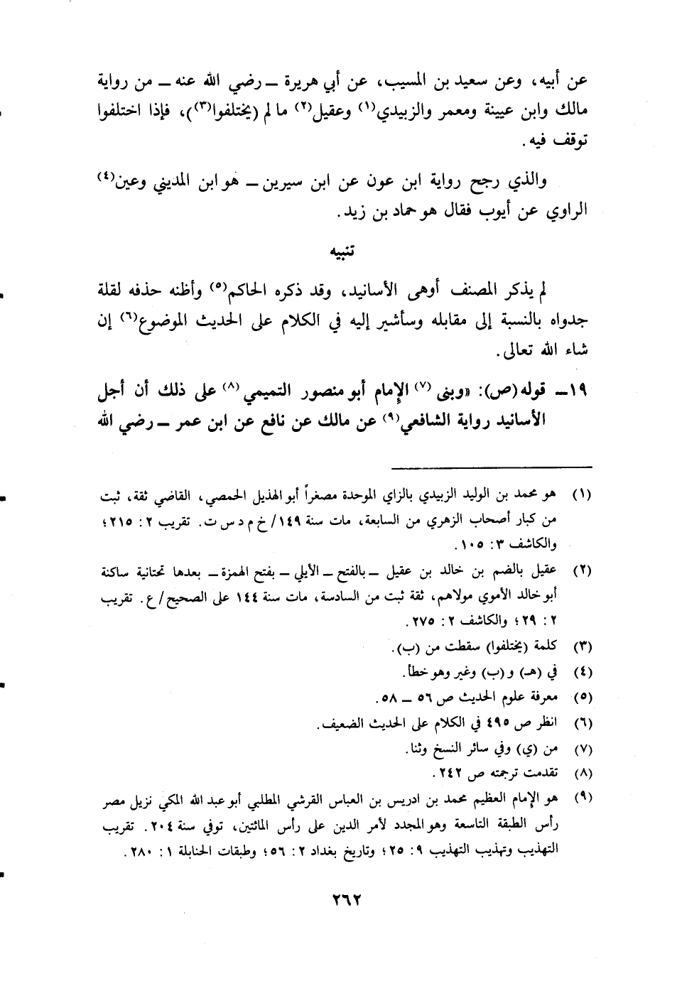 19- قوله (ص) : (وبنى7 الإمام منصور التميمي8 على ذلك أن أجل الأسانيد رواية الشافعي9 عن مالك عن نافع عن ابن عمر - رضي الله