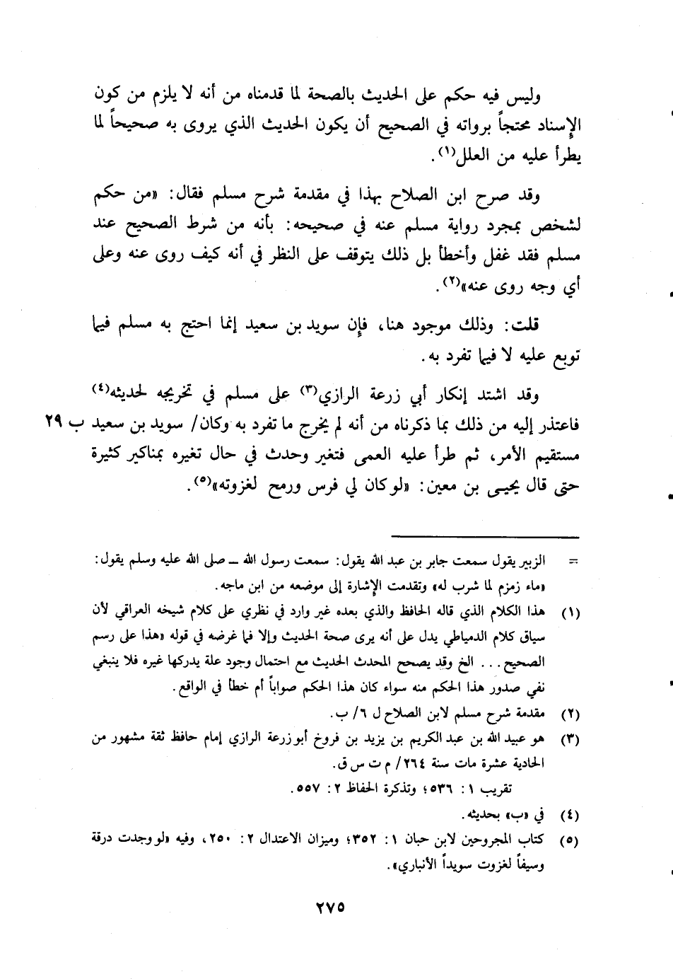 وليس فيه حكم على الحديث بالصحة لما قدمناه من أنه لا يلزم من كون الإسناد محتجا بروايته في الصحيح أن يكون الحديث الذي يروي به صحيحا؛ لما يطرأ عليه من العلل1.