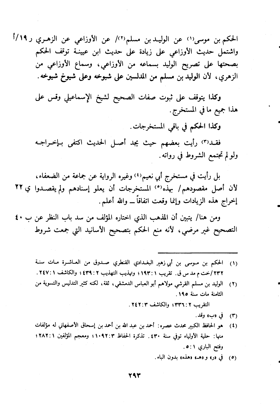 الحكم بن موسى1 عن الوليد بن مسلم2/ (ر19/أ) عن الأوزاعي عن الزهري واشتمل حديث الأوزاعي على زيادة على حديث ابن عيينة توقف الحكم بصحتها على تصريح الوليد بسماعه من الأوزاعي، وسماع الأوزاعي من الزهري؛ لأن الوليد بن مسلم من المدلسين على شيوخه وعلى شيوخ شيوخه.