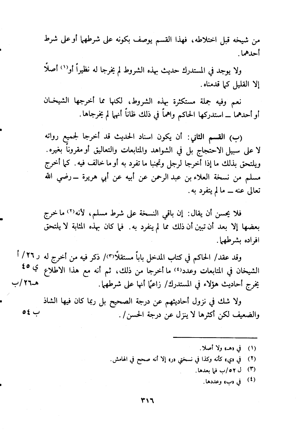وقد عقد/ (ر26/أ) الحاكم في كتاب المدخل بابا مستقلا3/ (ي45) ذكر فيه من أخرج له الشيخان في المتابعات وعدد4 ما أخرجا من ذلك، ثم أنه مع هذا الاطلاع يخرج أحاديث هؤلاء في المستدرك/ (? 26أب) زاعما أنها على شرطهما.