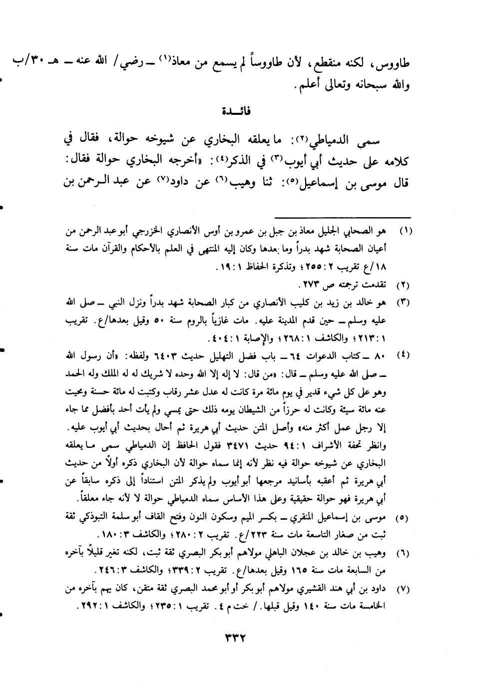 7 داود بن أبي هند القشيري مولاهم أبو بكر أو أبو محمد البصري ثقة متقن، كان يهم بآخره من الخامسة مات سنة 140 وقيل قبلها./ خت م 4. تقريب 1: 235، والكاشف 1: 292.