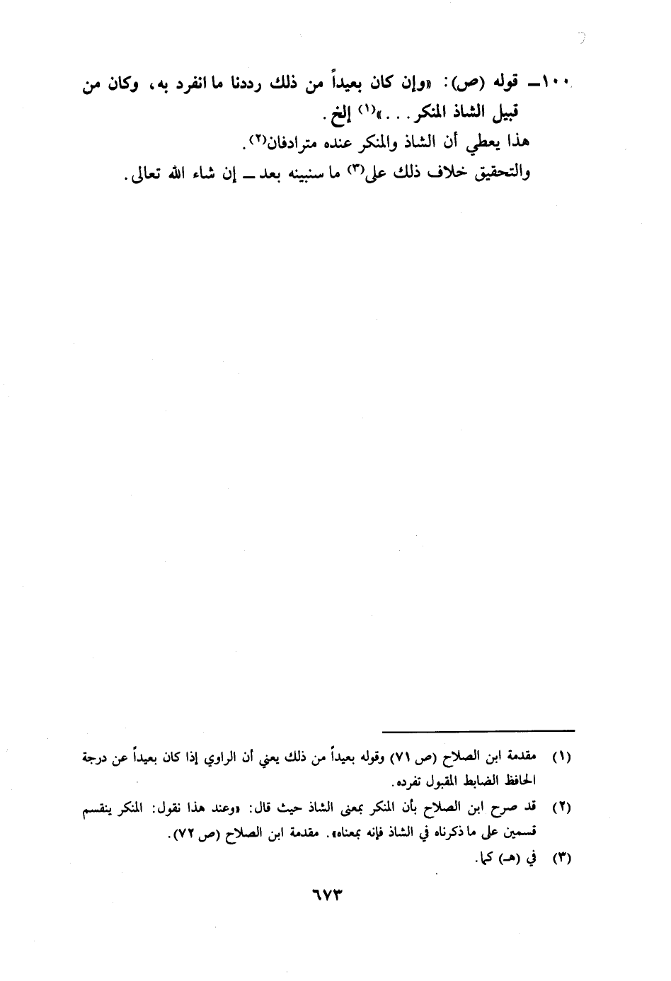 100-قوله (ص) : "وإن كان بعيدا من ذلك رددنا ما انفرد به، وكان من قبيل الشاذ المنكر...."1الخ.