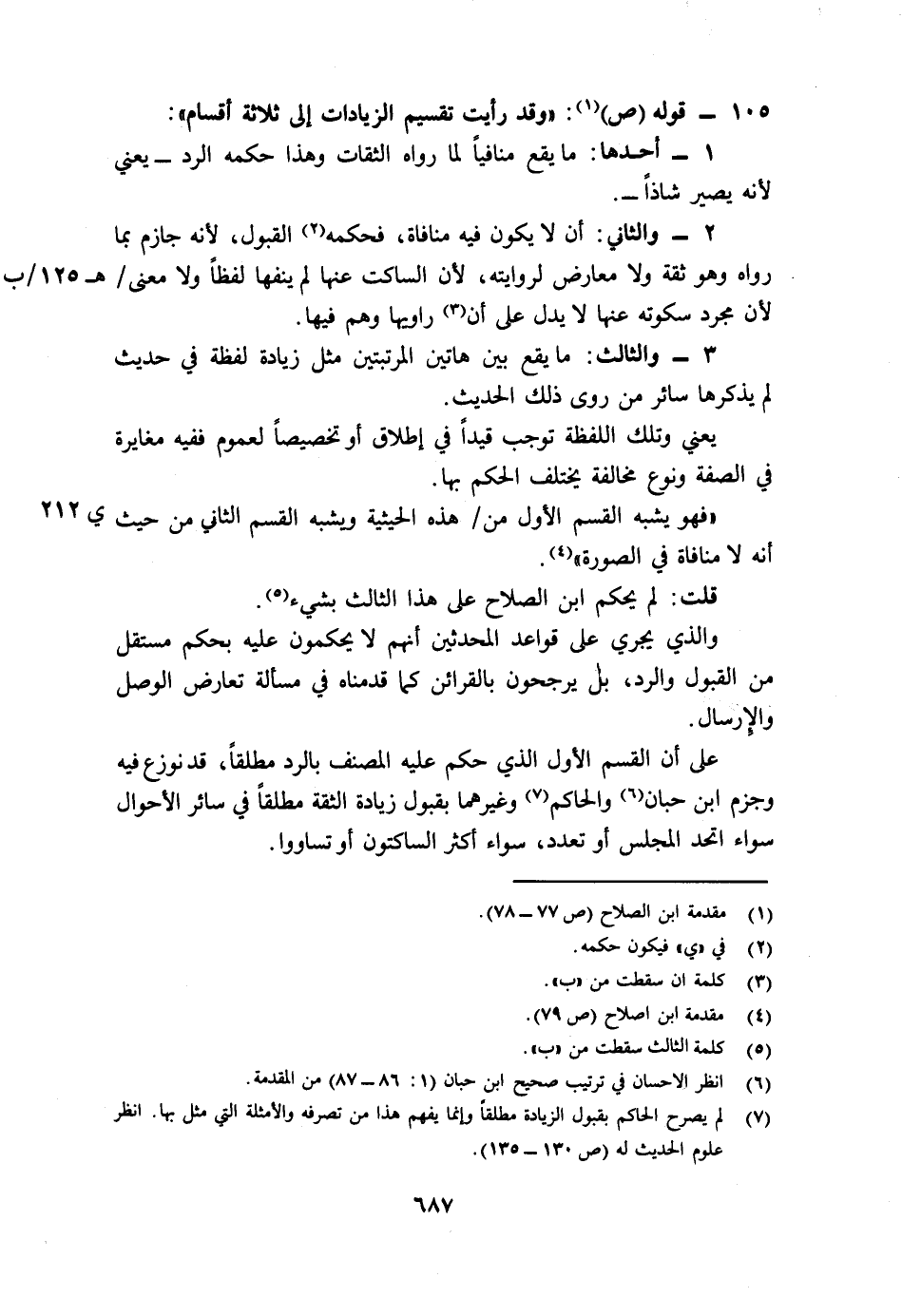 7 لم يصرح الحاكم بقبول الزيادة مطلقا وإنما يفهم هذا من تصرفه والأمثلة التي مثل بها. انظر علوم الحديث له ص 130- 135.