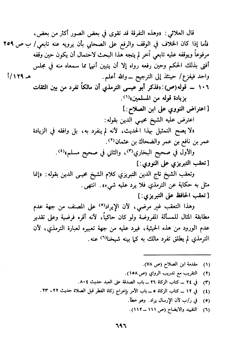 106- قوله (ص) : "فذكر أبو عيسى الترمذي أن مالكا تفرد من بين الثقات بزيادة قوله من المسلمين"1.