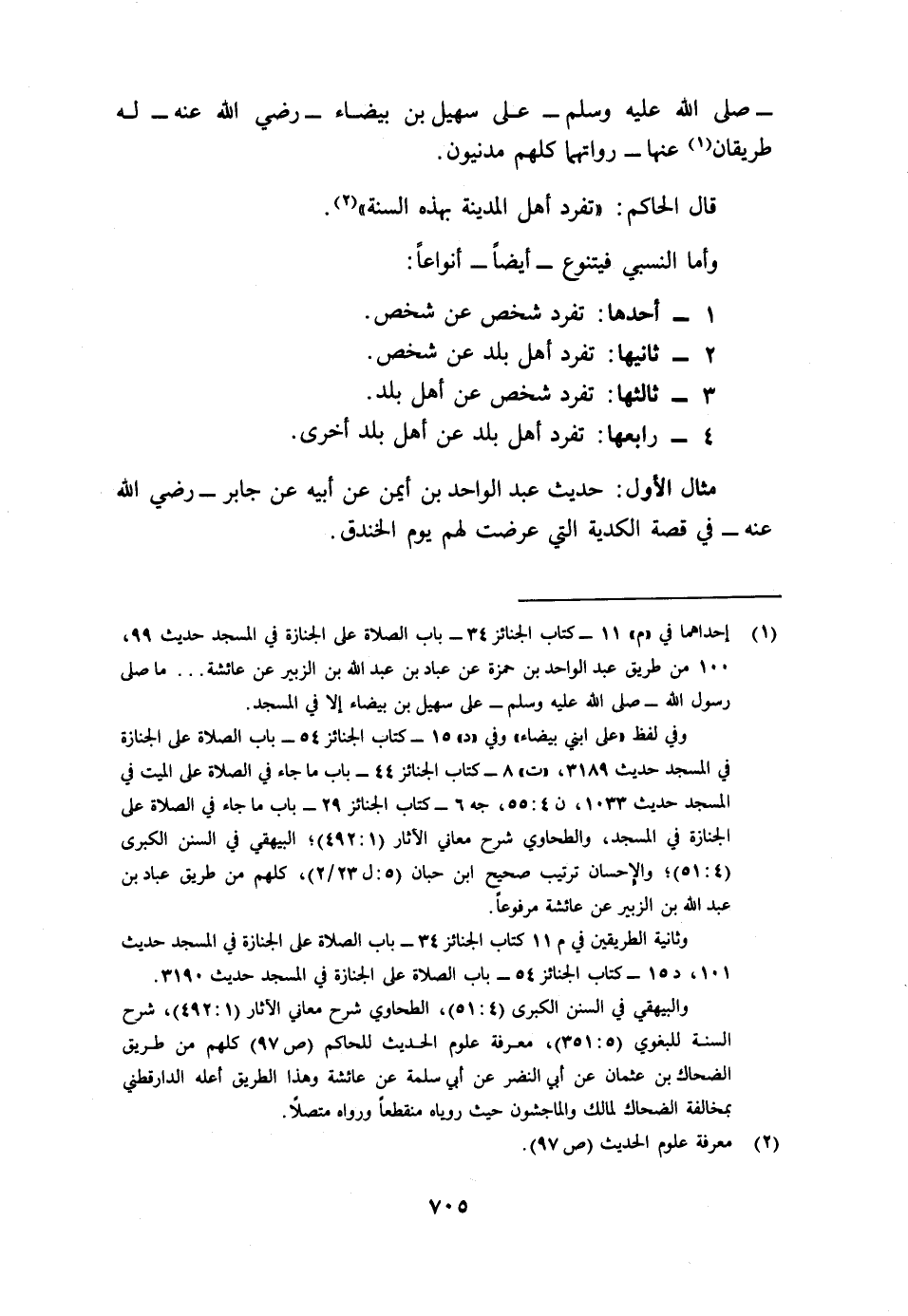 - صلى الله عليه وسلم - على سهيل بن بيضاء - رضي الله عنه -" له طريقان 1 عنها رواتها كلهم مدنيون.