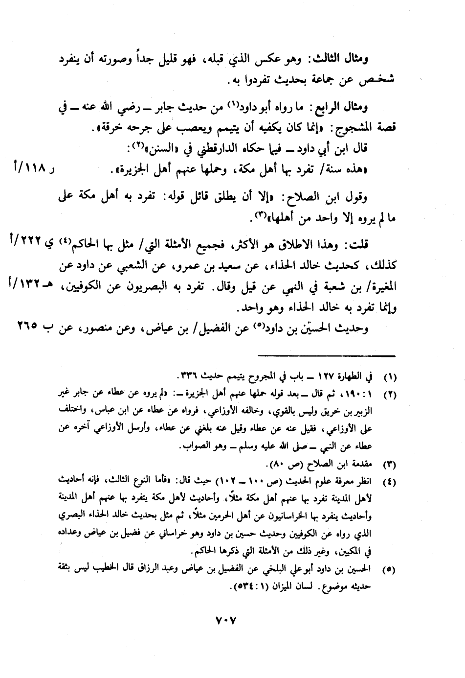 4 انظر معرفة علوم الحديث ص100-102 حيث قال: "فأما النوع الثالث، فإنه أحاديث لأهل المدينة تفرد بها عنهم أهل مكة مثلا، وأحاديث لأهل مكة يتفرد بها عنهم أهل المدينة وأحاديث ينفرد بها الخراسانيون عن أهل الحرمين مثلا"، ثم مثل بحديث خالد الحذاء البصري الذي رواه عن الكوفيين وحديث حسين بن داود وهو الخراساني عن فضيل بن عياض وعدداه في المكيين، وغير ذلك من الأمثلة التي ذكرها الحاكم.