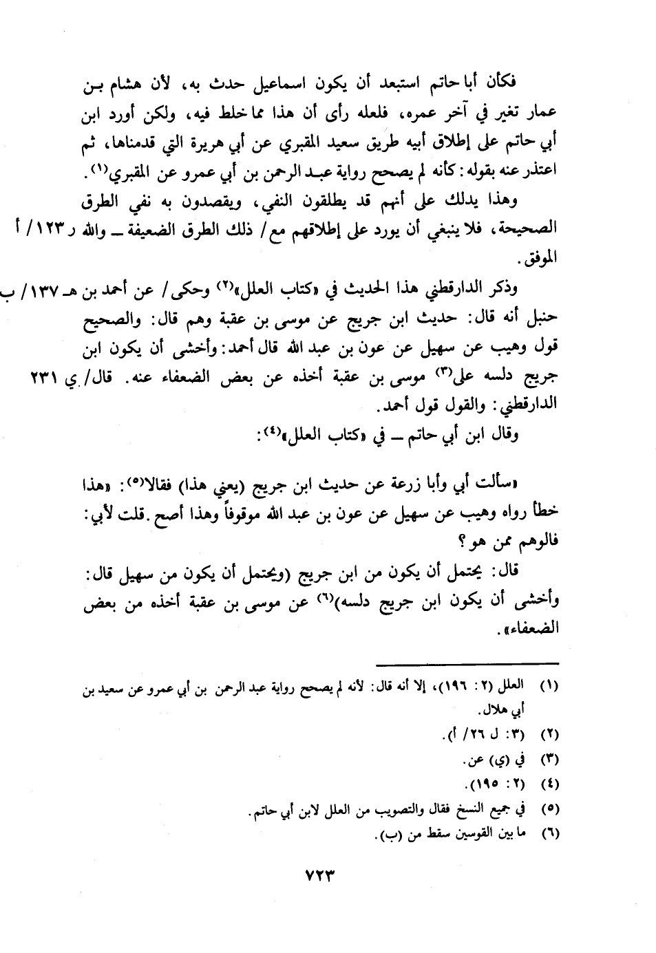 وقال ابن أبي حاتم - في كتاب العلل4: "سألت أبي وأبا زرعة عن حديث ابن جريج (يعني هذا) فقالا 5: "هذا خطأ رواه وهيب عن سهيل عن عون بن عبد الله موقوفا وهذا أصح. قلت لأبي: فالوهم ممن هو؟