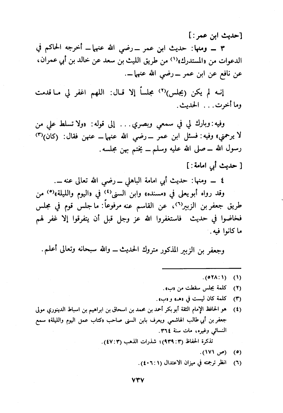 4- ومنها: حديث أبي أمامة الباهلي - رضي الله عنه - وقد رواه أبي يعلى في "مسنده" وابن السني4، في "اليوم والليلة"5 من طريق جعفر بن الزبير6، عن القاسم عنه مرفوعا: "ما جلس قوم في مجلس فخاضوا في حديث فاستغفروا الله عز وجل قبل أن يتفرقوا إلا غفر لهم ما كانوا فيه".