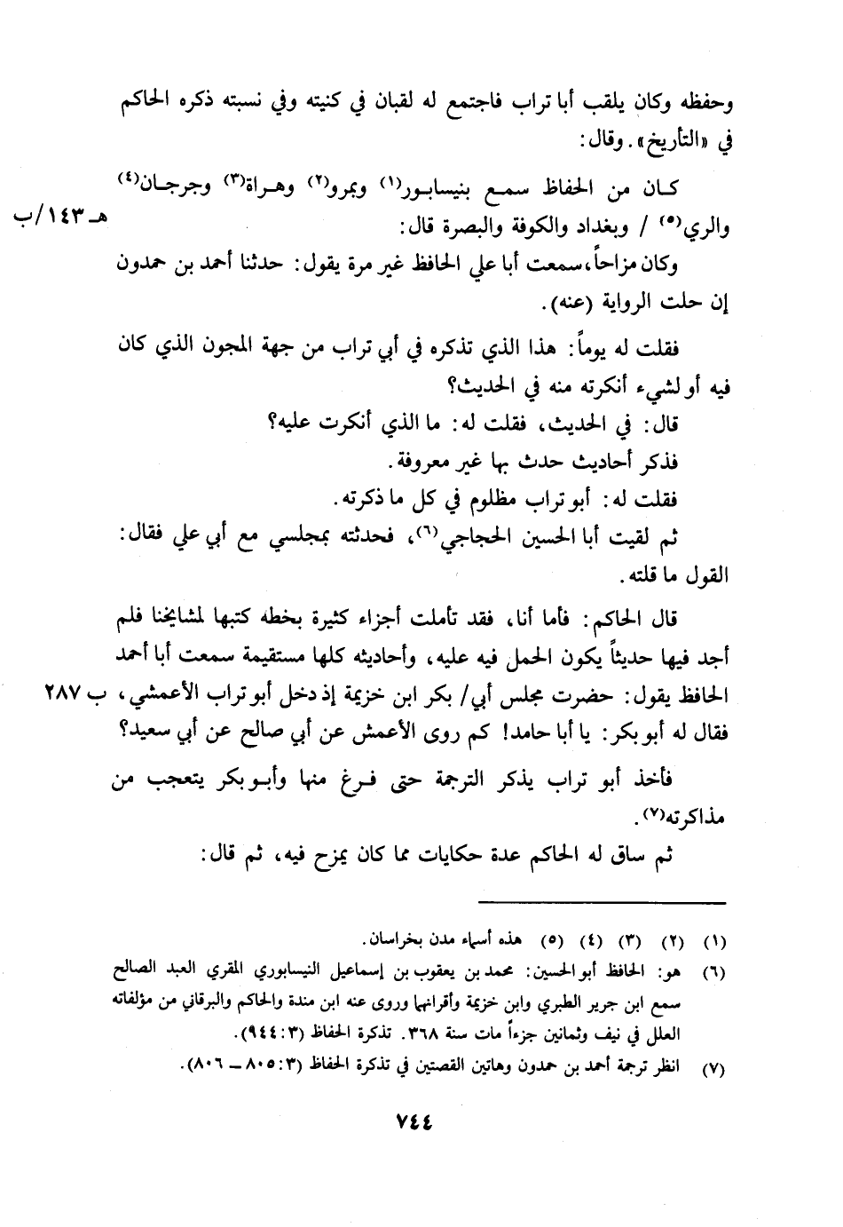 كان من الحفاظ سمع بنيسابور1 وبمرو2 وهراة3 وجرجان4 والري5 / (143/ب) وبغداد والكوفة والبصرة قال: