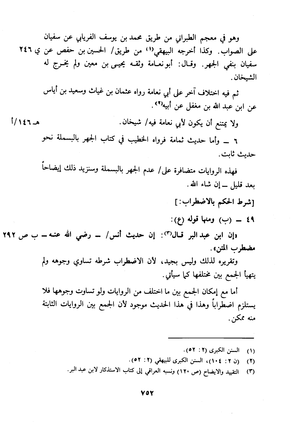 49- (ب) ومنها قوله (ع) : "إن ابن عبد البر قال3: إن حديث أنس/ (ب ص 292) - رضي الله عنه - مضطرب المتن". وتقريره لذلك.
