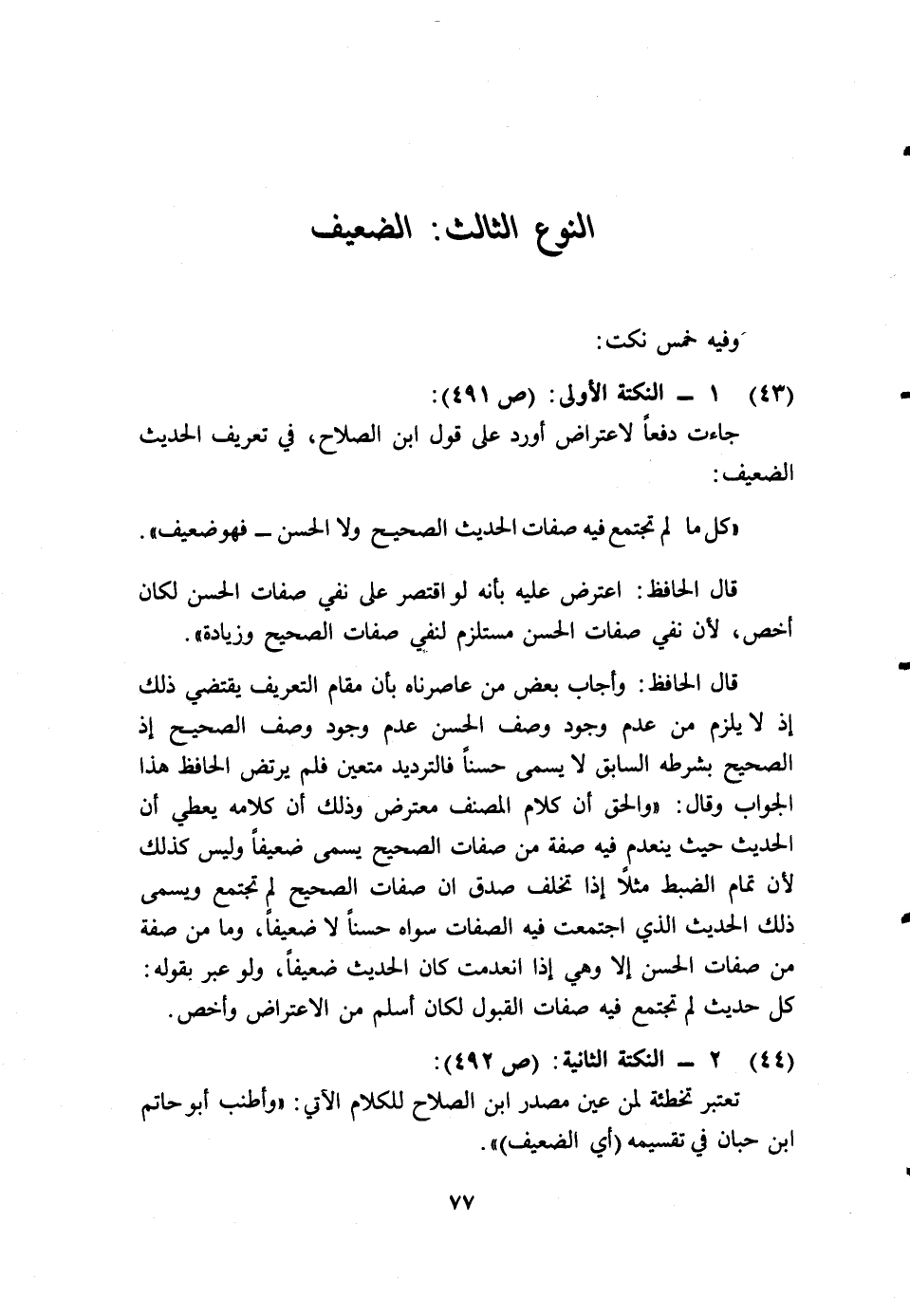 جاءت دفعا لاعتراض أورد على ابن الصلاح، في تعريف الحديث الضعيف: "كلما لم تجتمع فيه صفات الحديث الصحيح أو الحسن - فهو ضعيف".