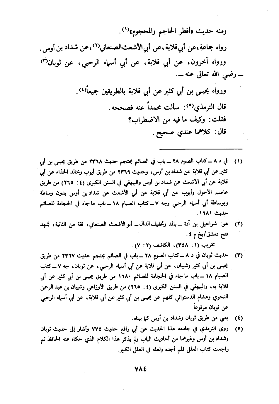 1 في د 8 كتاب الصوم 28 باب في الصائم يحتجم حديث 2368 من طريق يحيى بن أبي كثير عن أبي قلابة عن شداد بن أوس، وحديث 2369 من طريق أيوب وخالد الحذاء عن أبي قلابة عن أبي الأشعث عن شداد بن أوس البيهقي في السنن الكبرى 4/265 من طريق عاصم الأحول وأيوب عن أبي قلابة عن أبي الأشعث عن شداد بن أوس بدون وساطة وبوساطة أبي أسماء الرحبي، وجه 7 كتاب الصيام 18 باب ما جاء في الحجامة للصائم حديث 1681.
