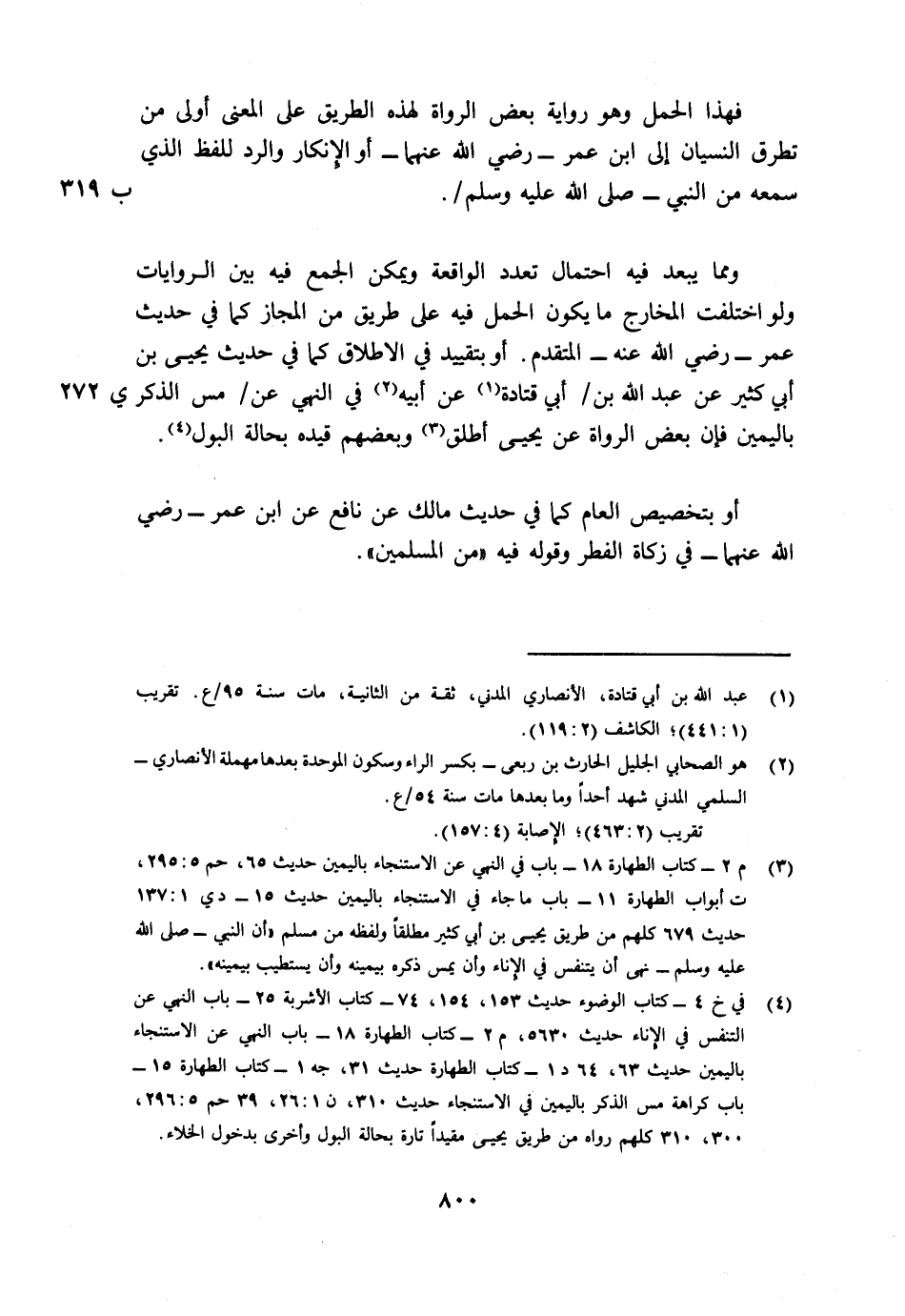 فهذا الحمل وهو رواية بعض الرواة لهذه الطريق على المعنى أولى من تطرق النسيان إلى ابن عمر - رضي الله عنهما - أو الإنكار والرد للفظ الذي سمعه من النبي - صلى الله عليه وسلم -/ (ب319) .