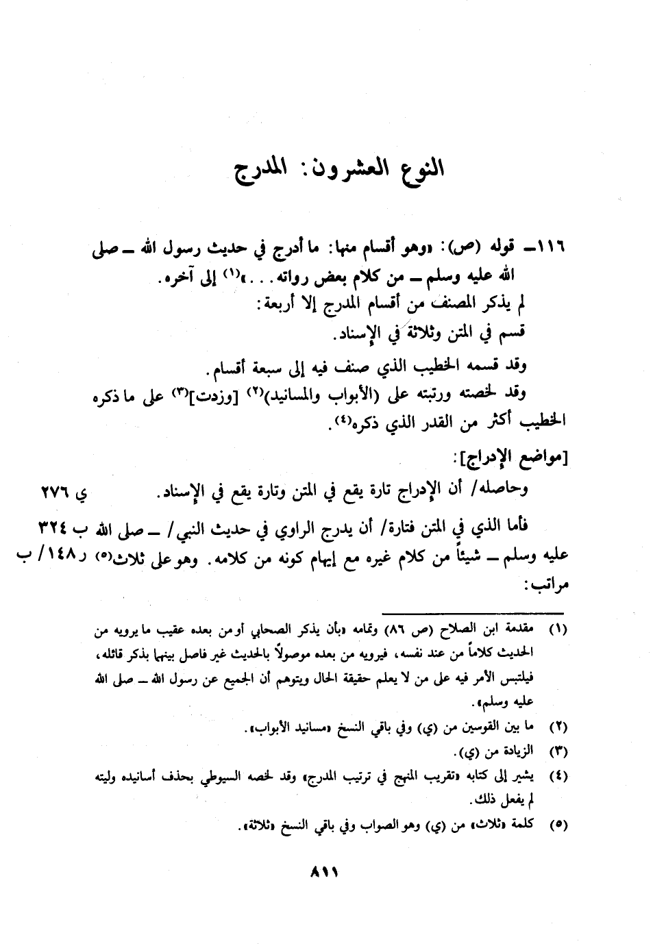 116- قوله (ص) : "وهو أقسام منها: ما أدرج في حديث رسول الله - صلى الله عليه وسلم - من كلام بعض رواته ... "1 إلى آخره.